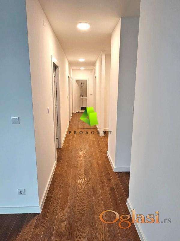 U ponudi je troiposoban stan koji se nalazi u novom stambeno-poslovnom kompleksu na najtraženijoj lokaciji u gradu. Površine je 130m2, nalazi se na IV spratu, orijentisan je ka jugu i zapadu. Sastoji se iz ulaznog hodnika, dnevnog boravka sa kuhinjom i trpezarijom, tri spavaće sobe, kupatila i terase. Kompleks je osmišljen sa vizijom idealnog stanovanja kako bi unapredio sve aspekte udobnog života. Pored stambenih jedinica pruža i druge pogodnosti kao što su: zelene površine, sadržaje za decu a stanarima su po povoljnijim cenama na raspolaganju: SPA centar sa bazenom, saunom, prostorijama za masažu, kao i vrhunski opremljenom teretanom. Vrhunski kvalitet materijala koji je korišćen u izgradnji, izolaciji enterijera i stolariji, kao i svaki detalj stambenih prostora, prilagođeni su savremenim potrebama kako porodica, tako i pojedinaca. Aluminijum prozori visokog kvaliteta sa troslojnim termo-staklom, višeslojni parket vrhunskog kvaliteta, kupatilo/kuhinja - keramika premium kvalitet. Objekat jei priključen na daljinski sistem grejanja gradske toplane, ugradni radijatori sa kalorimetrima. Postoji mogućnost kupovine i parking prostora po ceni od 20000e. Prava investicija za Vaš kvalitetan život, tako i za kasnije rentiranje. Za više informacija o ovoj ili drugim nekretninama i zakazivanje razgledanja kontaktirajte agenta na broj telefona iz oglasa (poziv, sms, viber) ili putem e-maila. Kompletnu ponudu dostupnih nekretnina možete pronaći na našem sajtu. Agencija Proagent nekretnine je upisana u Registru posrednika pod brojem: 940.