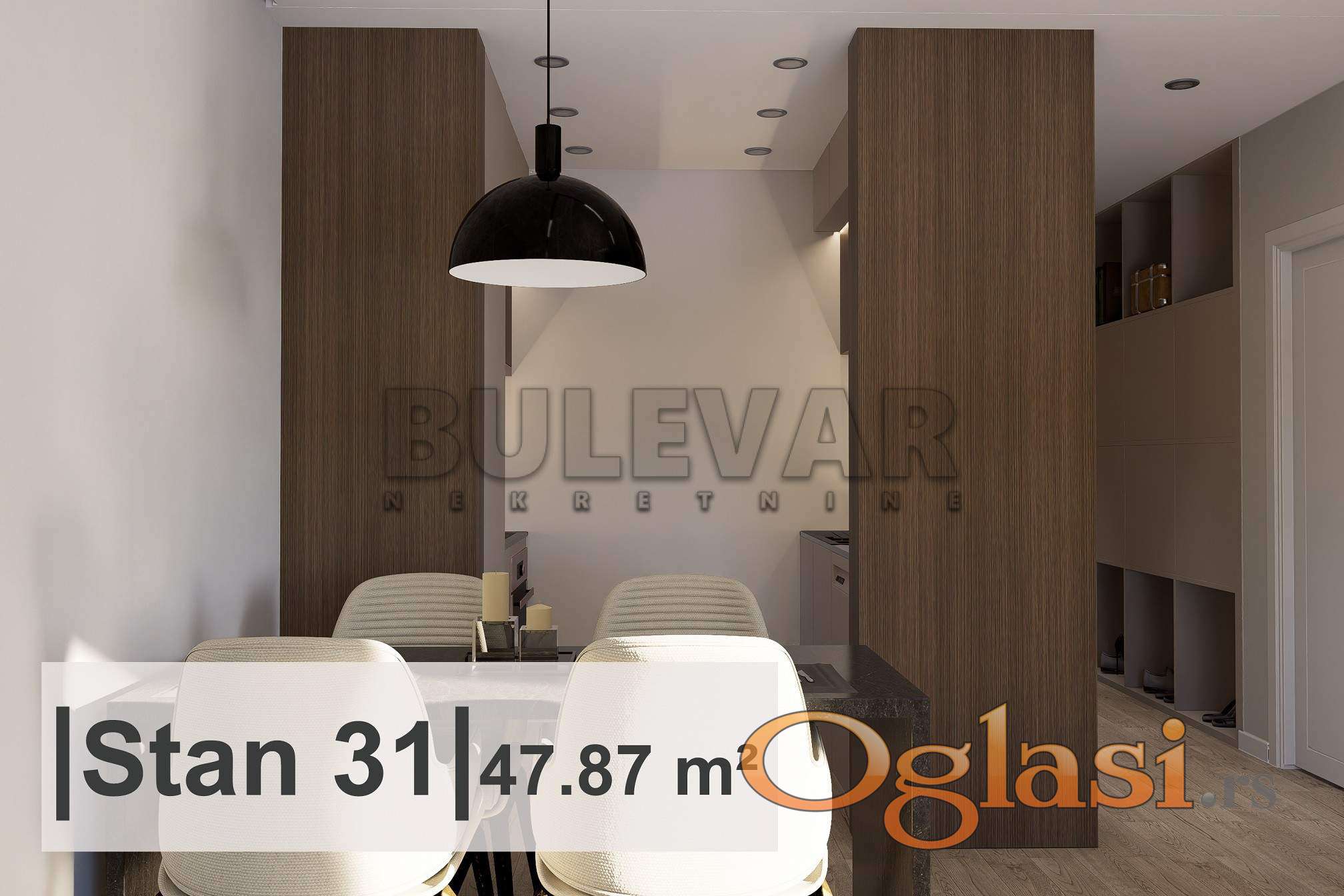Na prodaju ekskluzivna novogradnja u centru. Stambeno poslovni objekat Po+P+8. Stan je projektovane površine 47,87m2. Nalazi se na sedmom spratu, čine ga ulazni hodnik, dnevna soba sa trpezarijom i kuhinjom, spavaća soba, toalet, kupatilo i terasa. Svaka stambena jedinica ima nezavisan sistem grejanja i hlađenja koji je automatizovan i moguće ga je kontrolisati putem mobilnog uređaja. Sistem za grejanje je postavljen kroz pod sa elektro-kotlom, dok je rashladni sistem sa invertor klimama. Svi podovi izvedeni su kao plivajući sa ugrađenom zvučnom izolacijom. Na podu je višeslojni parket, a u kupatilu granitna keramika. Unutrašnja stolarija izrađena je od visoko kvalitetnog furnira, dok je spoljna stolarija od aluminijuma. Predviđeni rok završetka je jun 2027. godine. Za kupce prvog stana postoji mogućnost povratka PDV-a. Postoji mogućnost kupovine parking mesta. Ovo je samo deo naše ponude, za više informacija stojimo Vam na raspolaganju.