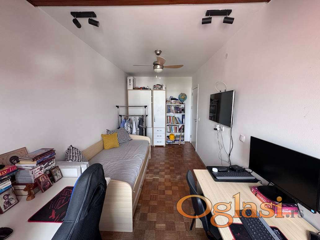 Stan je gotovo u potpunosti renoviran i odlično održavan. Strukturno je veoma funkcionalan, a čine ga: tri spavaće sobe, dnevna soba, trpezarija i kuhinja, kupatilo i dodatni toalet, ostava ,predsoblje i velika terasa.