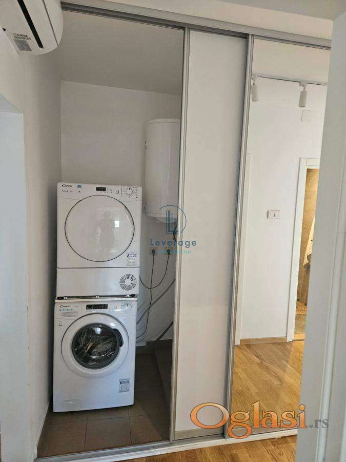 Veliki prozori od poda do plafona obezbeđuju mnogo prirodne svetlosti i prijatan, topao ambijent tokom čitavog dana. Hodnik je opremljen savremenim američkim plakarima koji omogućavaju efikasno iskorišćenje prostora i urednost doma.