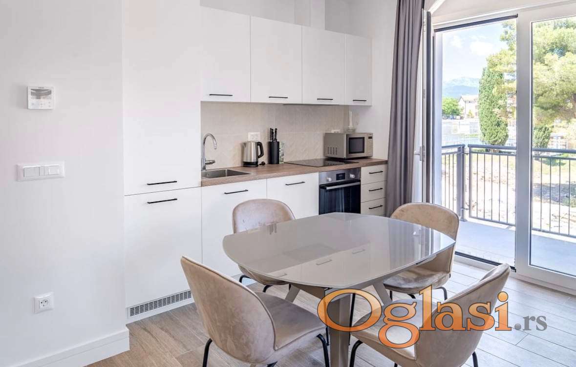 Na prodaju moderno namješten studio stan površine 45m², smješten u prelijepom kompleksu Luštica Centrale. Nalazi se na prvom spratu i raspolaže parking mjestom i ostavom koja se nalazi u podrumu zgrade. Stan je potpuno opremljen modernim i kvalitetnim namještajem, spreman za useljenje bez dodatnih ulaganja. Zbog svoje lokacije i funkcionalnog rasporeda, predstavlja odličan potencijal za rentiranje kako na duži, tako i na kraći rok.