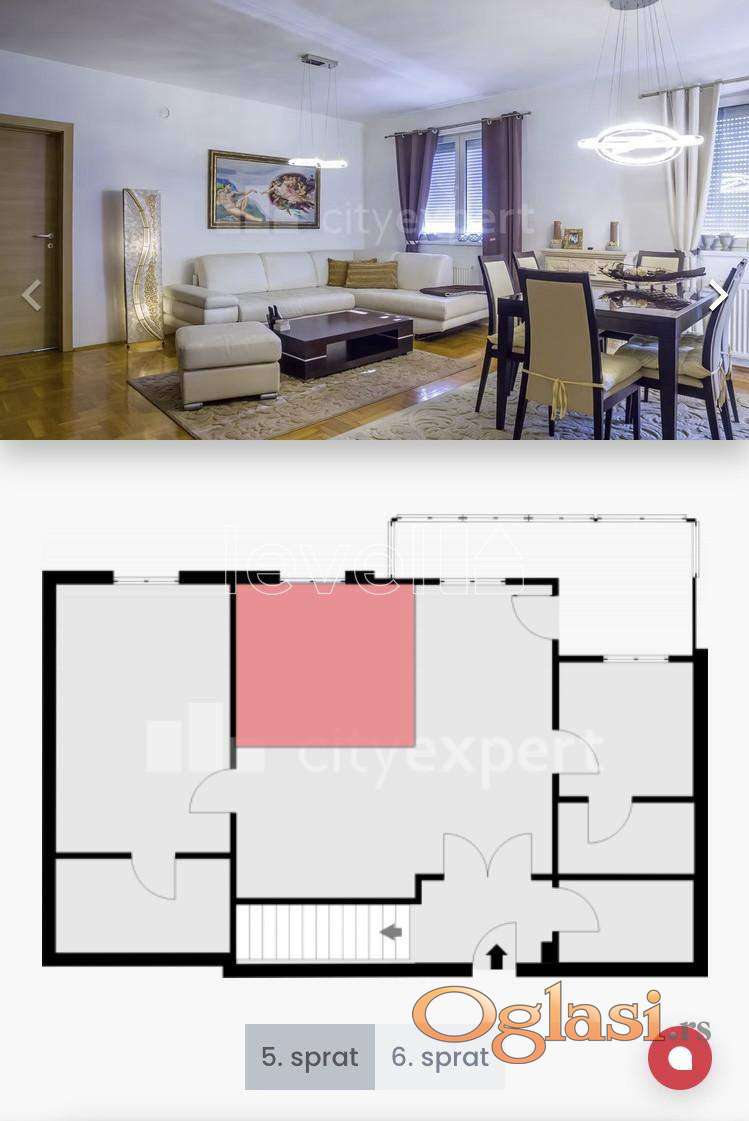 LEVEL PROPERTY, agencija za nekretnine Vam predstavlja petosoban, dvoetažni stan površine 120m² sa dodatnih 7m² zastakljene terase, smešten na 5. spratu stambene zgrade u mirnom i urbanom delu Novog naselja u Novom Sadu. Stan je kompletno opremljen, sa funkcionalnim rasporedom i kvalitetnim nameštajem, odmah useljiv i idealan za porodice koje traže prostran i svetao dom. U donjoj etaži nalazi se veliki dnevni boravak sa izlazom na zatvorenu terasu, odvojena kuhinja rađena po meri sa pripadajućom ostavom, dok se u gornjoj etaži nalaze tri sobe, među kojima je i master spavaća soba sa sopstvenim prostranim kupatilom. Stan ima još jedno veliko kupatilo i dodatni gostinski toalet, što omogućava komfor i privatnost svim članovima porodice. Zgrada se nalazi u blizini škole, vrtića, pijace i više supermarketa, a ispred objekta ima dovoljno parking mesta kao i prostrano dečije igralište, što dodatno doprinosi kvalitetu porodičnog života. Ova nekretnina predstavlja odličnu priliku za one koji traže kvalitetan, moderan stan na atraktivnoj lokaciji u Novom Sadu.