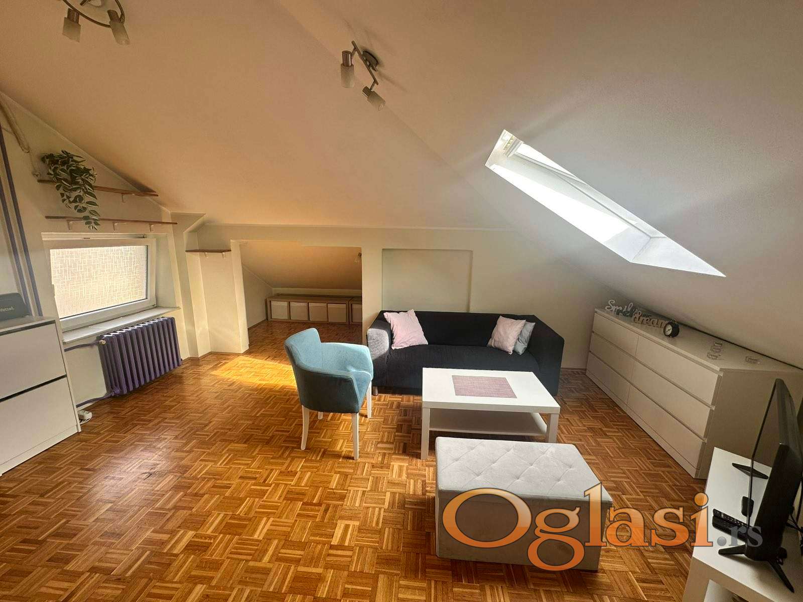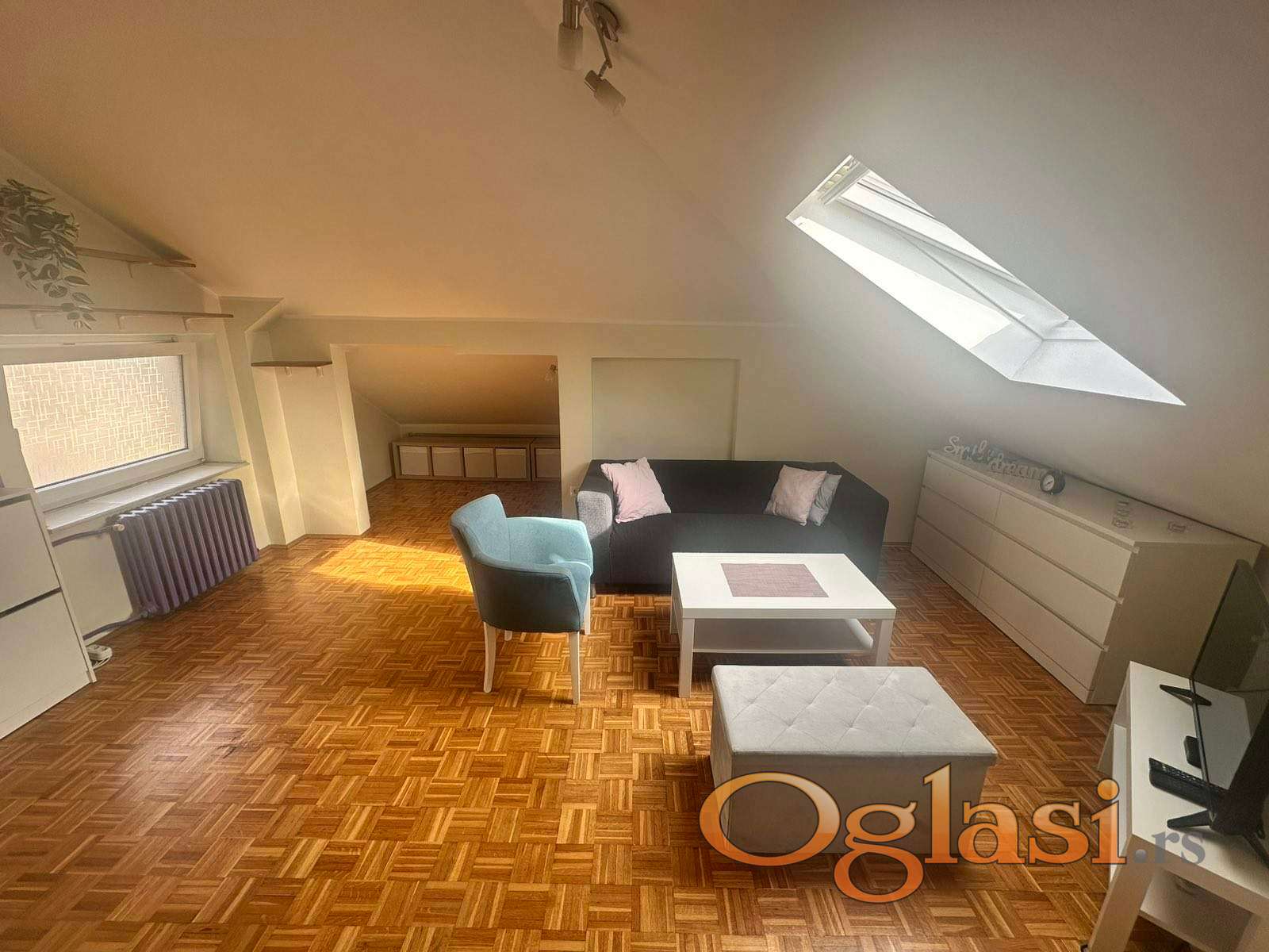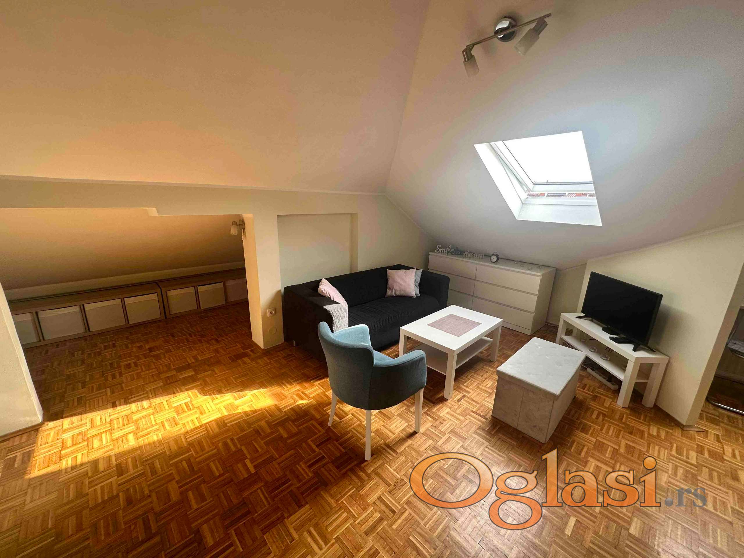 Stan je kompletno renoviran i moderno uređen – ugrađeni su kvalitetni Velux troslojni krovni prozori, podovi i instalacije su zamenjeni, a prostor maksimalno iskorišćen za udoban boravak.