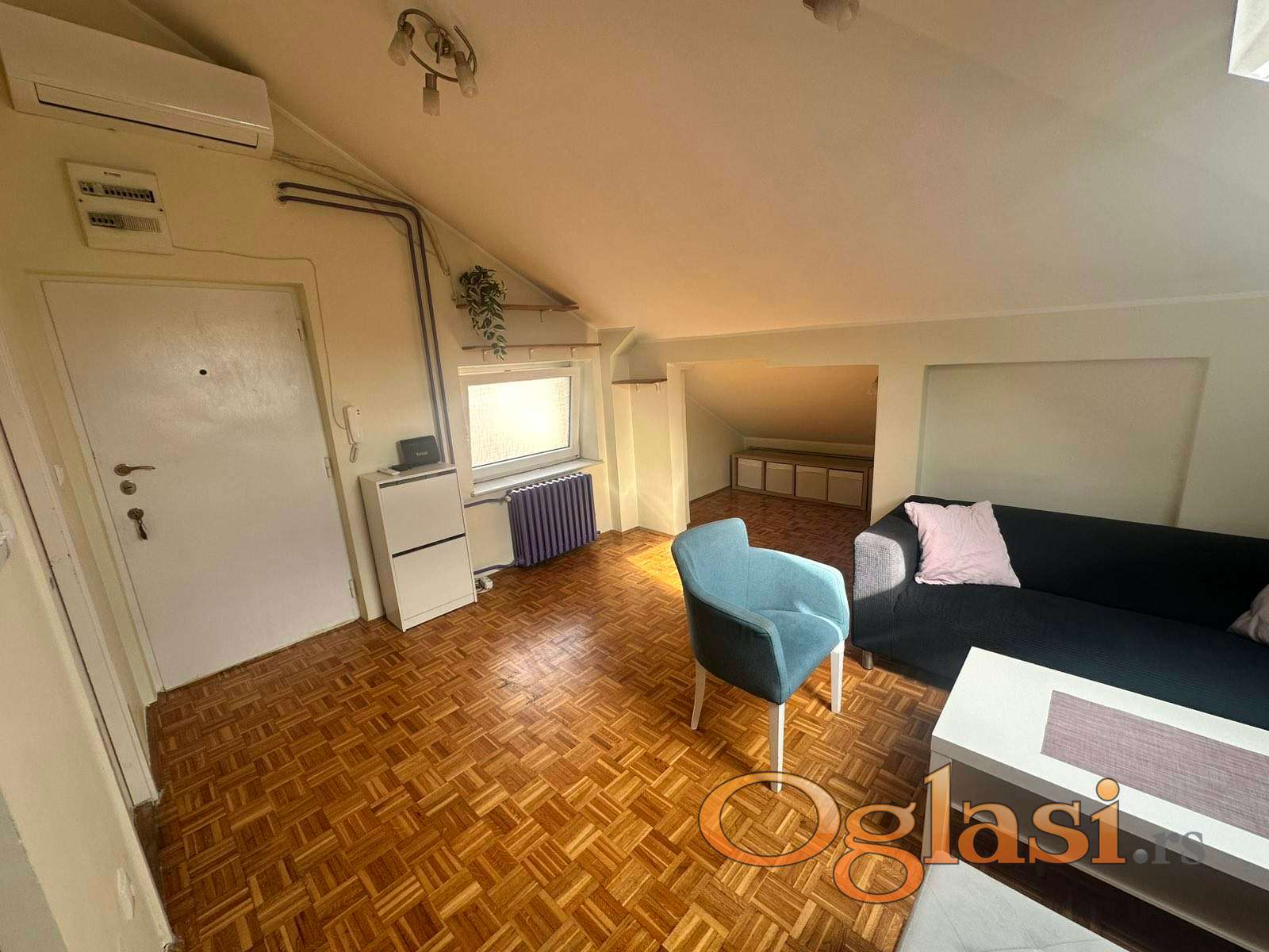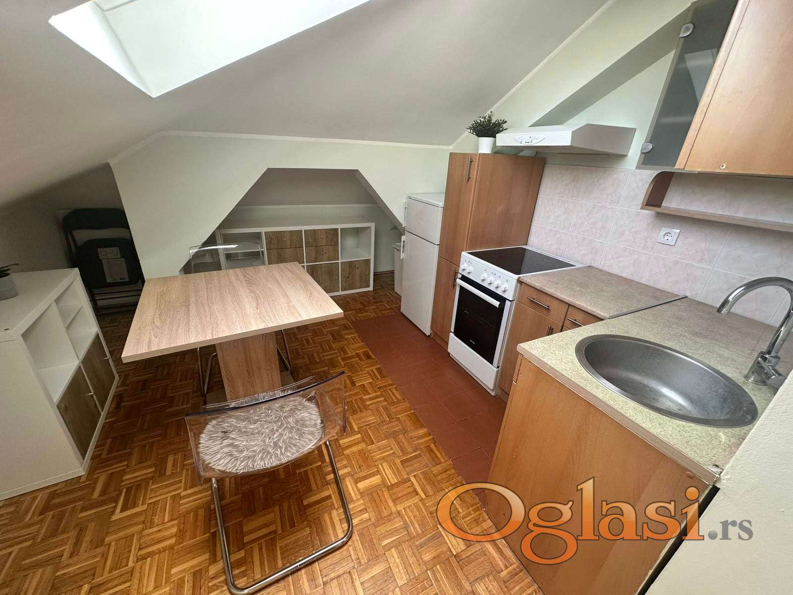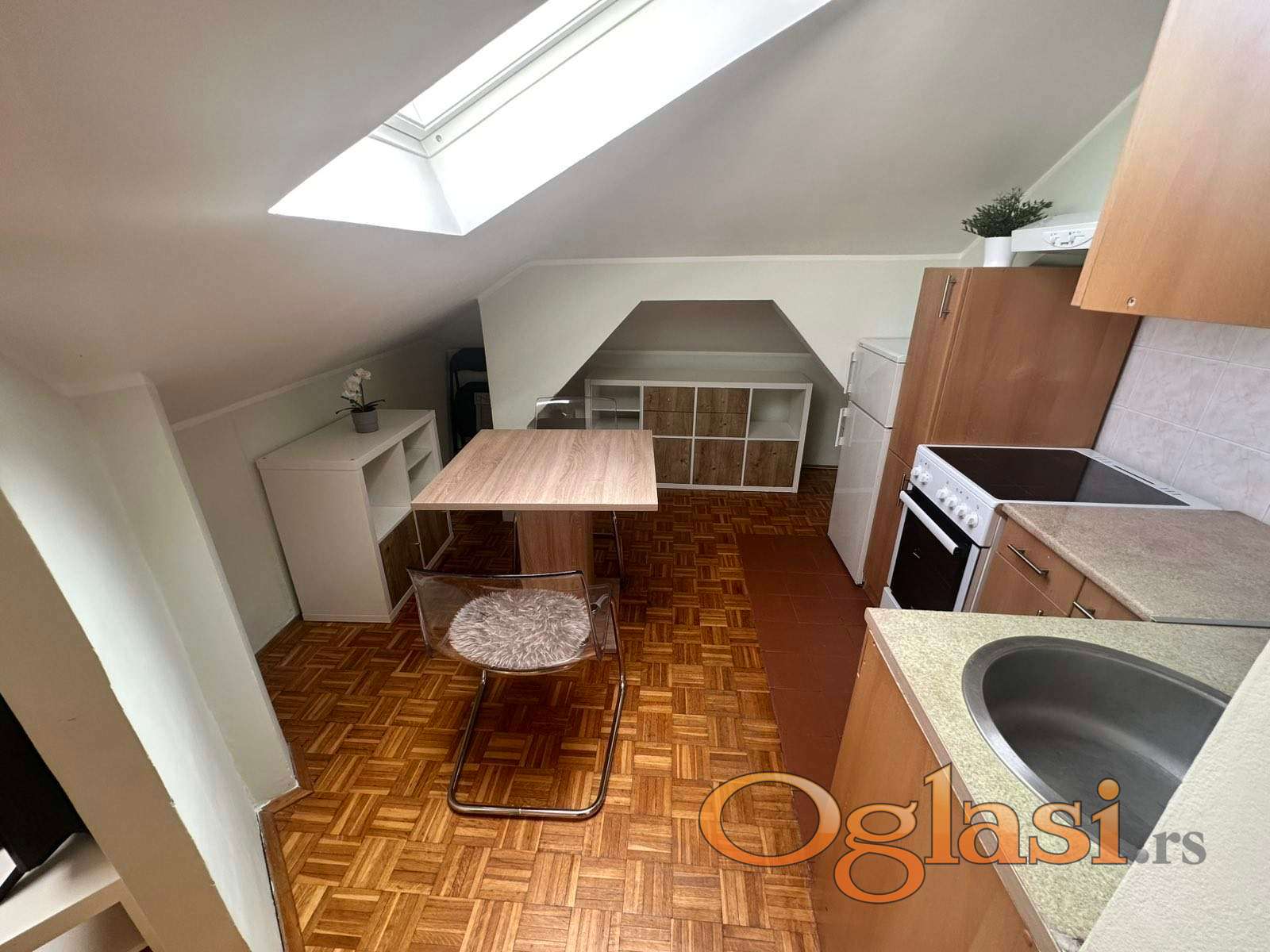 Stan je kompletno renoviran i moderno uređen – ugrađeni su kvalitetni Velux troslojni krovni prozori, podovi i instalacije su zamenjeni, a prostor maksimalno iskorišćen za udoban boravak.