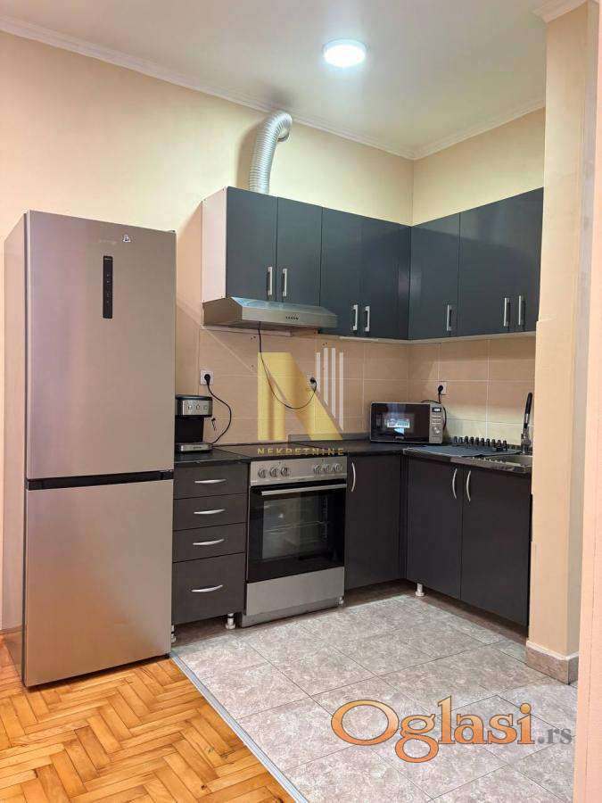 Stan je čist, uredan i kozmetički renoviran. Prodaje se delimično namešten, uključujući celu kuhinju sa belom tehnikom