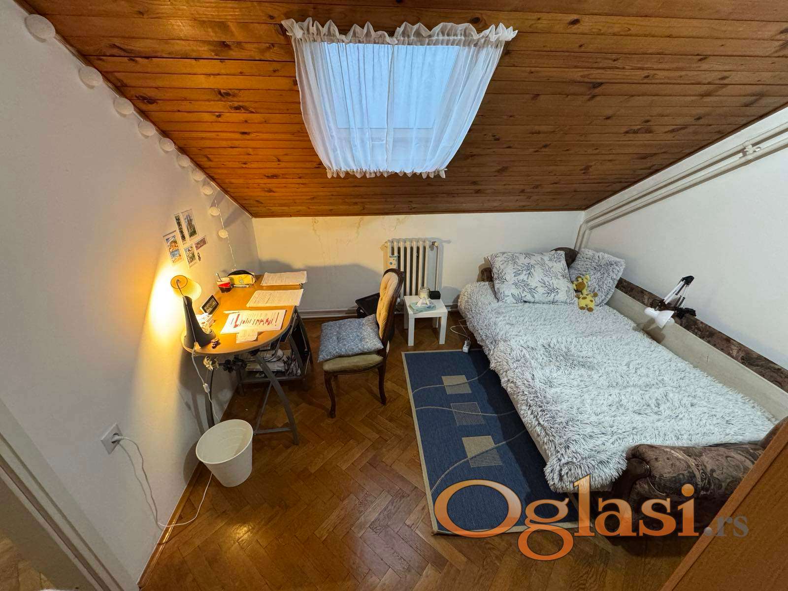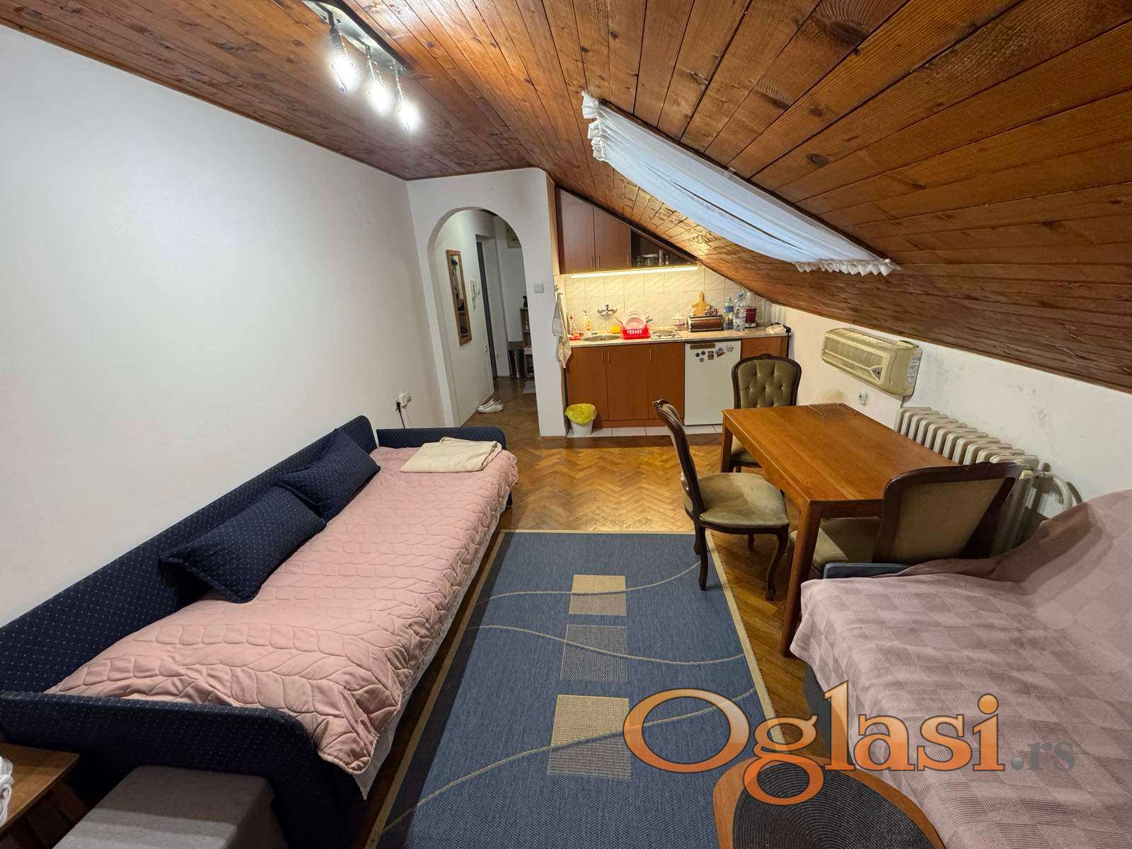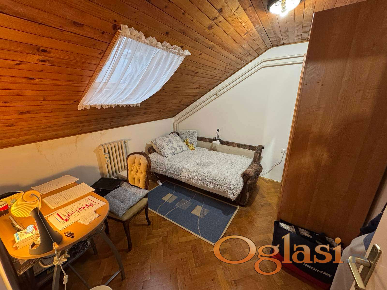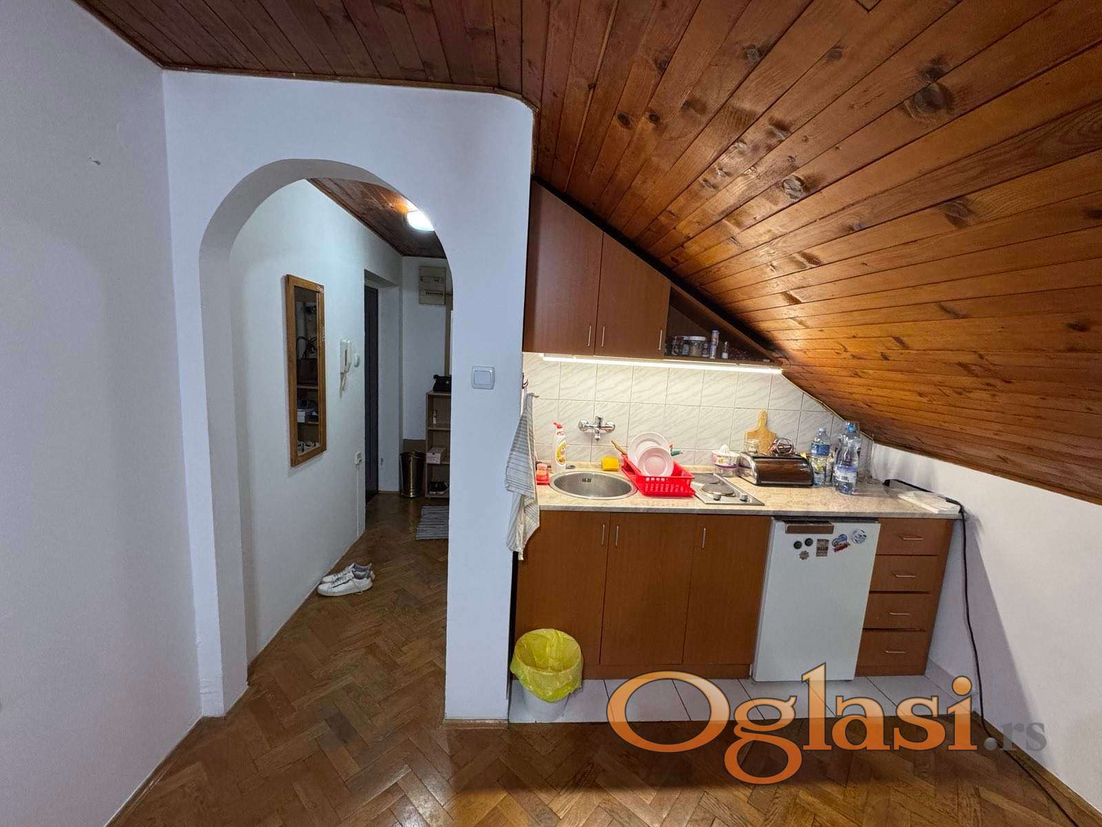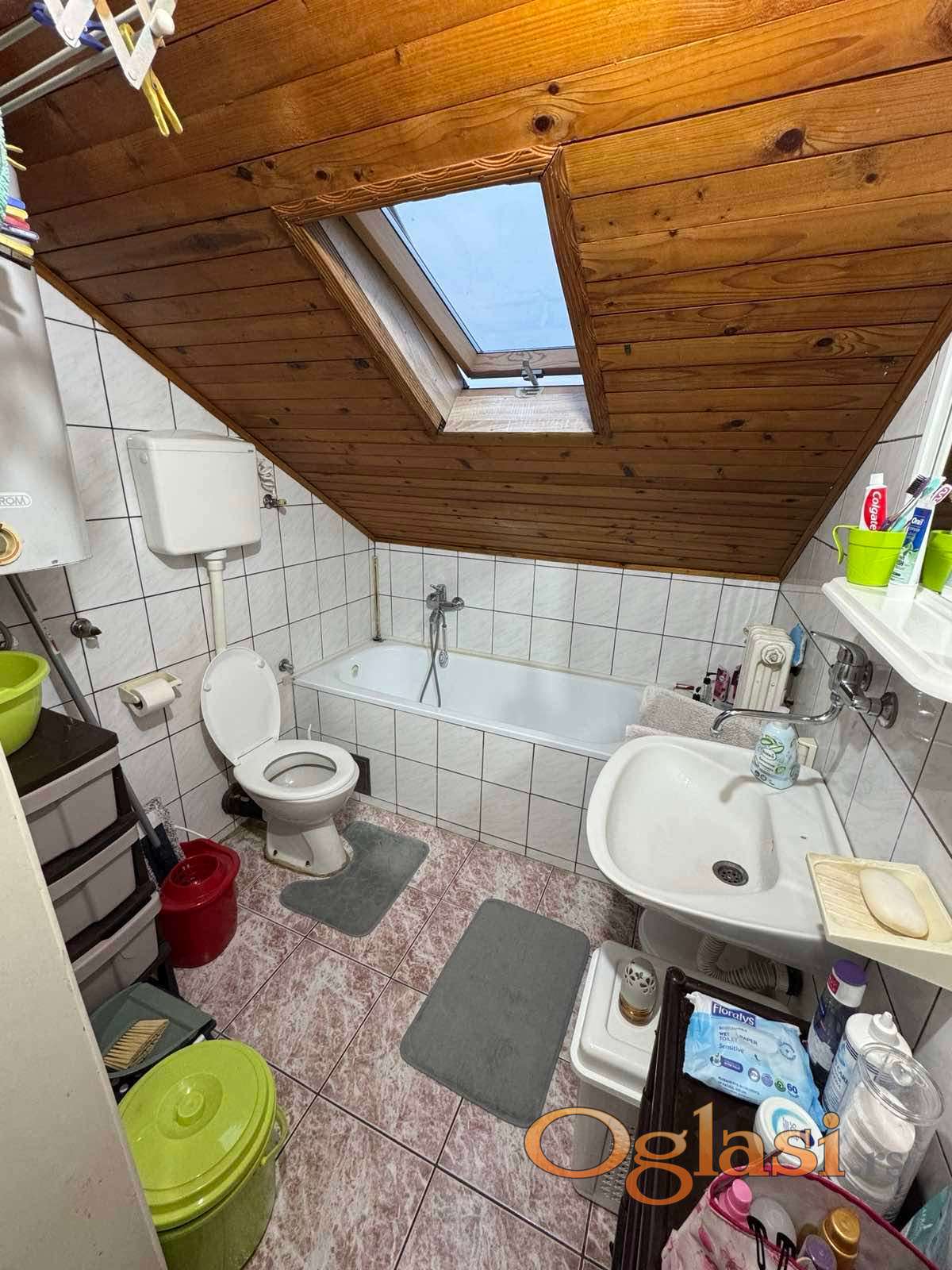 Jednoiposoban stan u potkrovlju zgrade, bez terase i bez lifta. Funkcionalnog rasporeda sa odvojenom sp.sobom. Podne površine 31m2, uknjižene 26m2. Kosine u stanu su samo sa jedne strane.