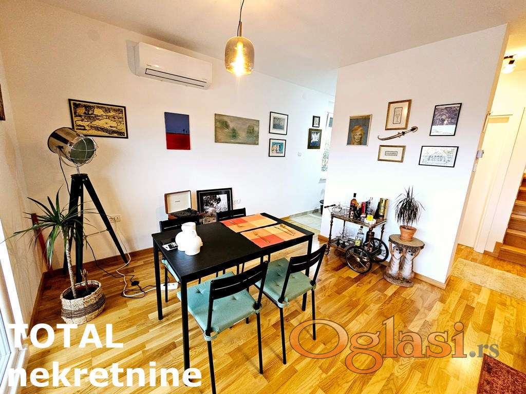 Agencijska oznaka: 1101573 CENA 180.000 e sa nameštajem i tehnikom +3% agencijske provizije. Na prodaju nov, moderno namešten dupleks stan – izuzetno svetao, prozračan i prostran, sa visokim plafonima koji mu daju posebnu eleganciju i širinu. Enterijer je pažljivo i s ljubavlju dizajniran, stvarajući toplu i prijatnu atmosferu. U donjem delu stana nalazi se dnevni boravak povezan sa kuhinjom i trpezarijom u otvorenom konceptu, sa direktnim izlazom na terasu idealnu za opuštanje i uživanje u miru. Na istom nivou nalazi se i toalet, što doprinosi praktičnosti prostora. Gornji nivo obuhvata dve udobne spavaće sobe i moderno kupatilo, dok kosine ne ometaju kretanje zahvaljujući visini plafona. Stan je smešten u mirnom okruženju, ušuškan od gradske buke, a opet u neposrednoj blizini svih važnih dešavanja. U toku je ugradnja lifta, što će dodatno olakšati svakodnevni život. Idealan dom za mladi par koji želi spoj udobnosti, stila i funkcionalnosti. Mogućnost kupovine putem stambenog kredita. Za dodatne informacije pozovite: 065 51 880 45 Višnja Tomić