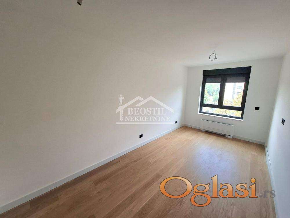 Stan se sastoji od dnevne sobe sa kuhinjom, tri sobe, dva kupatila, toaleta, vešernice i terase. Stan je osmiṣ̌ljen i urađen sa kvalitetnim uvoznim materijalima.