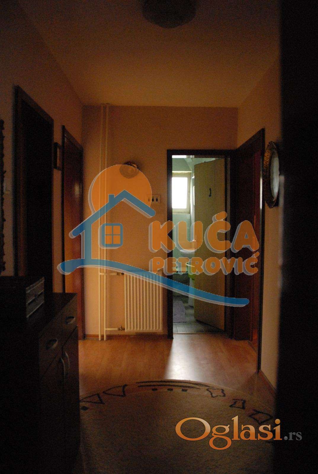Na prodaju trosoban stan 86m2 u kući u Durlanu, u blizini Somborskog bulevara i OŠ Čegar. Stan se nalazi na prvom spratu dvospratne kuće, sa posebnim ulazom. Stan se sastoji od ulaznog hodnika, dnevne sobe, kuhinje sa trpezarijom, dve spavaće sobe, kupatila, toaleta i dve terase. Na podovima je parket, stolarija je drvena, grejanje je TA. Stan je uknjižen kao svojina 1/1, etažiran u ozakonjenoj kući, moguća kupovina putem stambenog kredita. Za više informacija, stojimo Vam na raspolaganju.