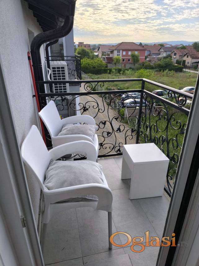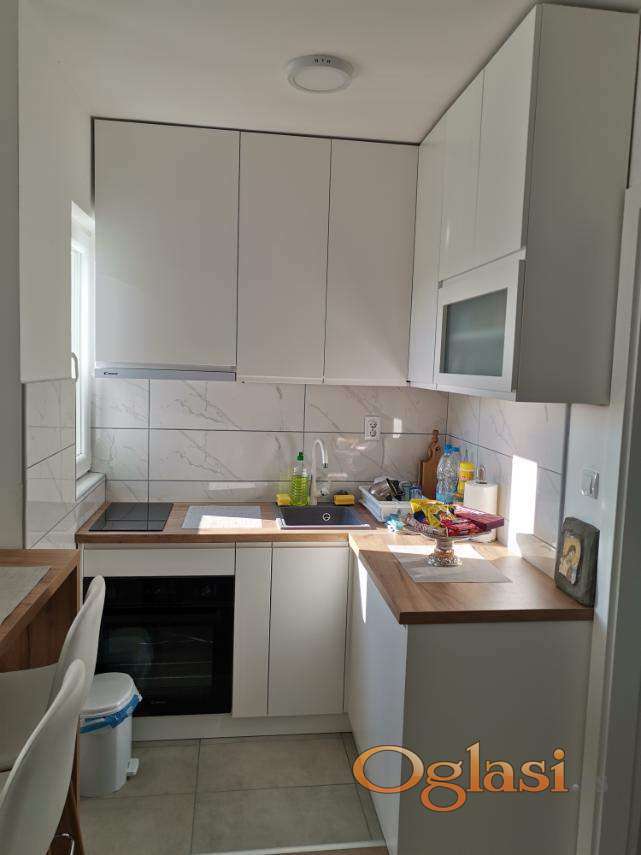 Stan je kompletno opremljen – sve stvari su nove, rađene po meri od medijapana, uz kvalitetnu belu tehniku. Svaki detalj je pažljivo osmišljen kako bi prostor bio maksimalno iskorišćen.