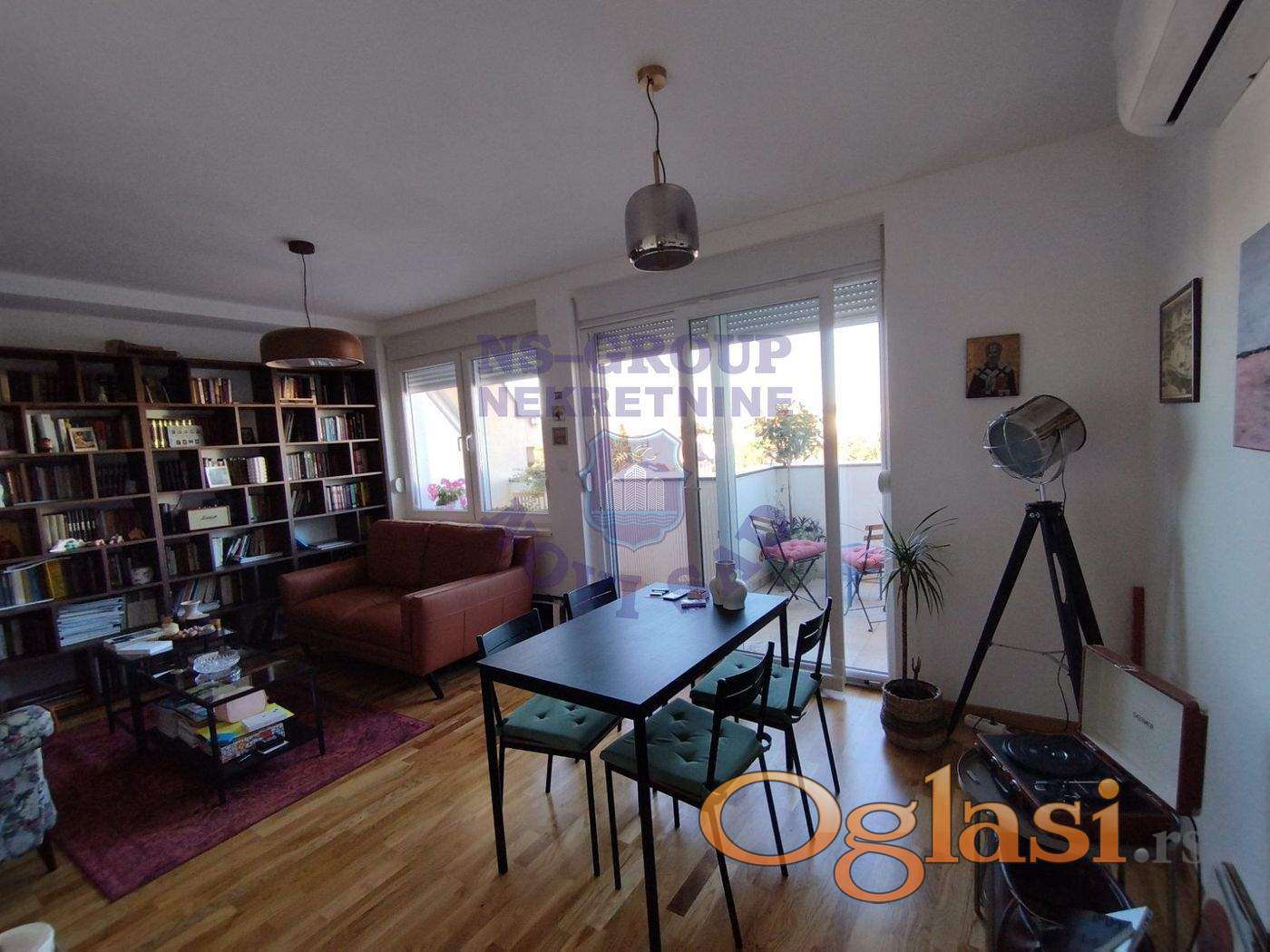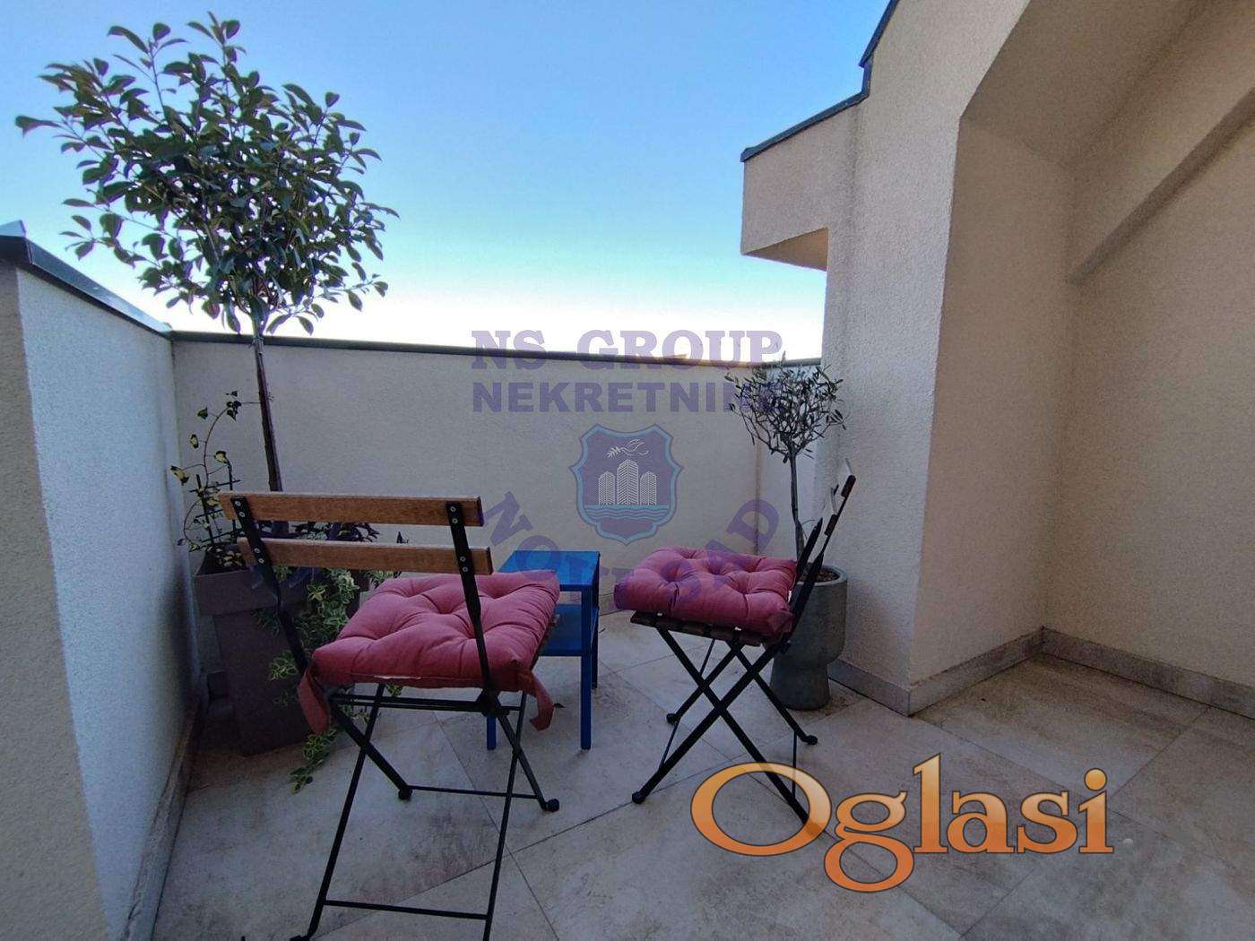 Odličan trosoban duplex na ekstra lokaciji. Nov, bez ulaganja, sa prelepom terasom za odmor i uživanje. Prodaje se kompletno namešten.