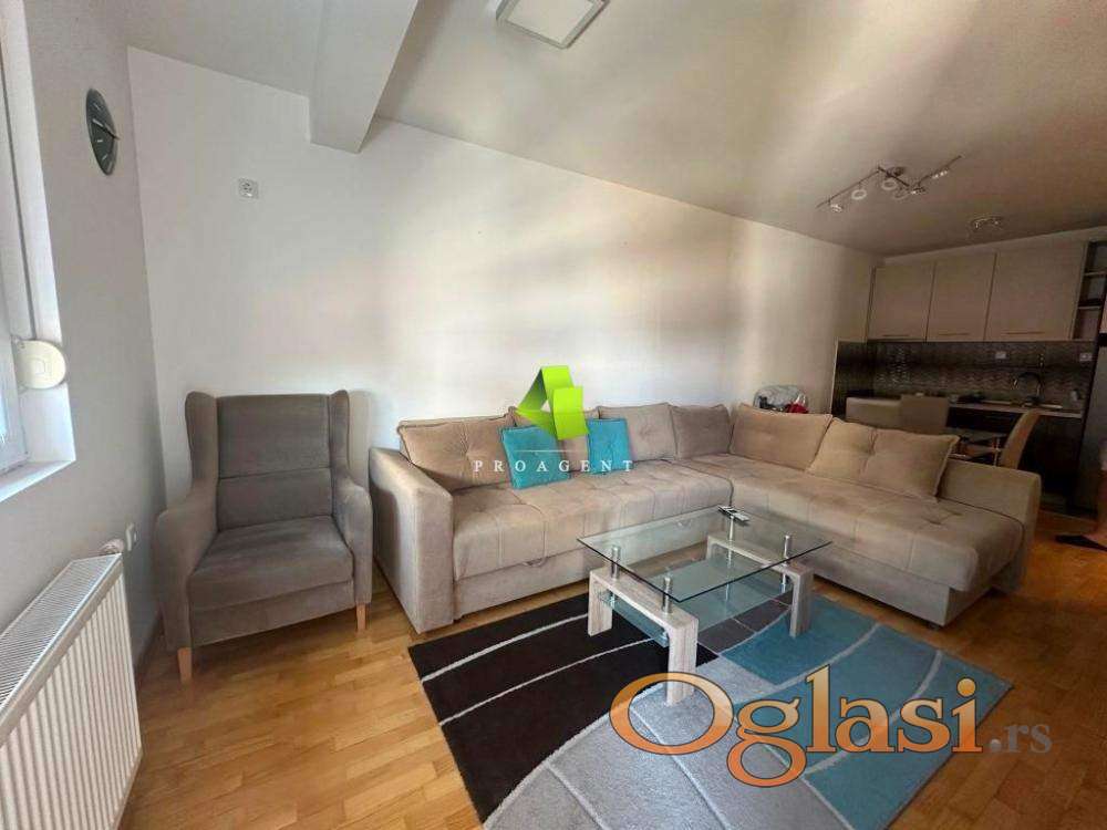 Prodaje se jednoiposoban stan u centru grada. Površine je 45m2, nalazi se na III spratu nove stambene zgrade sa liftom. Sastoji se od ulaznog hodnika, dnevnog boravka, kuhinje, spavaće sobe, kupatila i terase. Na podu je parket, stolarija je PVC profila, grejanje je centralno. Stan se prodaje sa stvarima, što predstavlja jednu od prednosti pri donošenu odluke o kupovini jer se odmah može koristiti. Nalazi se na dobroj lokaciji, u blizini svih važnih institucija i gradskih dešavanja i poseduje sve što Vam je potebno za kvalitetan i komforan porodičan život. Hvala Vam što ste pogledali oglas. Za više informacija o ovoj ili drugim nekretninama i zakazivanje razgledanja kontaktirajte agenta na broj telefona iz oglasa (poziv, sms, viber) ili putem e-maila. Kompletnu ponudu dostupnih nekretnina možete pronaći na našem sajtu. Agencija Proagent nekretnine je upisana u Registru posrednika pod brojem: 940