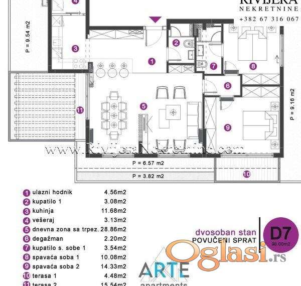 Ukupno: 98m2 + 29.09m2 terase