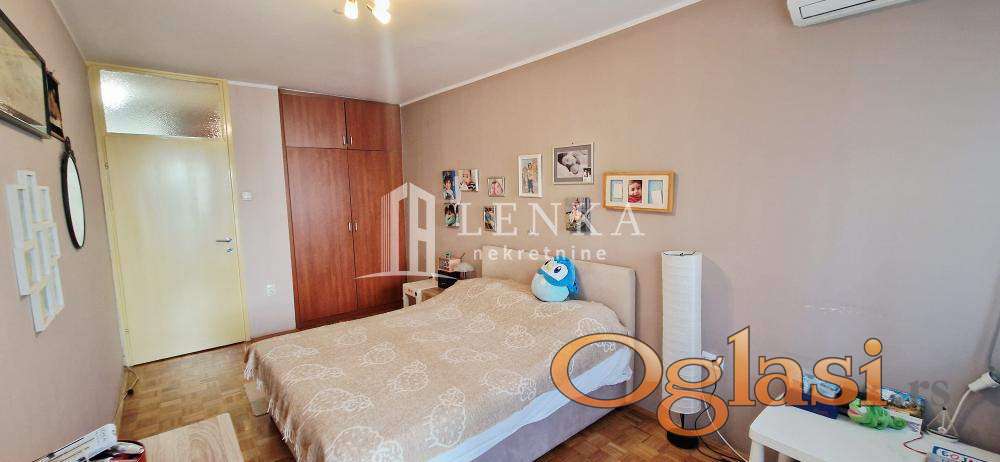 Komforan četvorosoban stan u zgradi sagrađenoj sredinom osamdesetih godina sa pripadajućim podrumom i vešernicom na spratu. Prostranost, dobra spratnost i osunčanost kao i odlična lokacija pružiće vam vrhunski osećaj. Na ulazu sa protivprovalnim vratima je komotan hodnik iz koga kroz dvokrilna vrata ulazite u dnevnu sobu. Prostrana kuhinja i trpezarija za uživanje u pripremanju hrane kao i jedna spavaća soba sa zastakljenom lođom čine celinu za sebe. U drugom delu stana nalaze se dve spavaće sobe sa zajedničkom terasom. Stan poseduje i dva kupatila. PVC stolarijaInterfon, internet, kamere, klima, CG, gradnja 1984Kupac plaća proviziju 2%