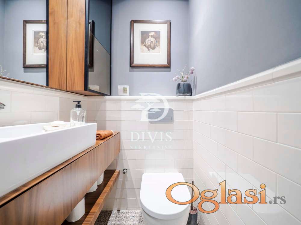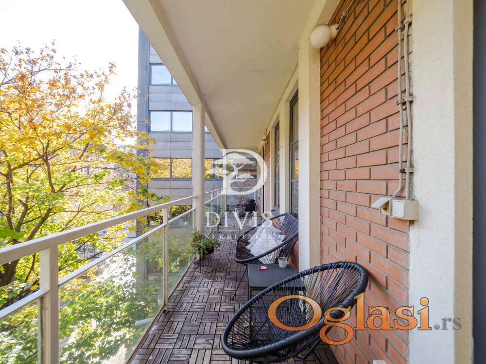 Sastoji se od prostranog dnevnog boravka sa trpezarijom i kuhinjom u openspace konceptu, sa izlazom na veliku terasu duž čitavog prostora, ušuškanu zelenilom, zatim tri komforne spavaće sobe, velikog kupatila i gostinskog toaleta. Stan je temeljno renoviran pre šest godina, pri čemu su korišćeni najkvalitetniji materijali, kako u funkcionalnom tako i u estetskom smislu. Enterijer odiše sofisticiranim dizajnom i visokim standardom završne obrade.