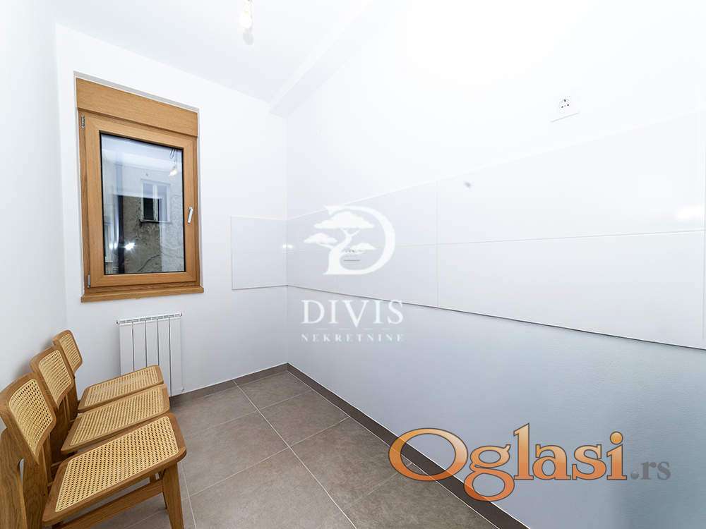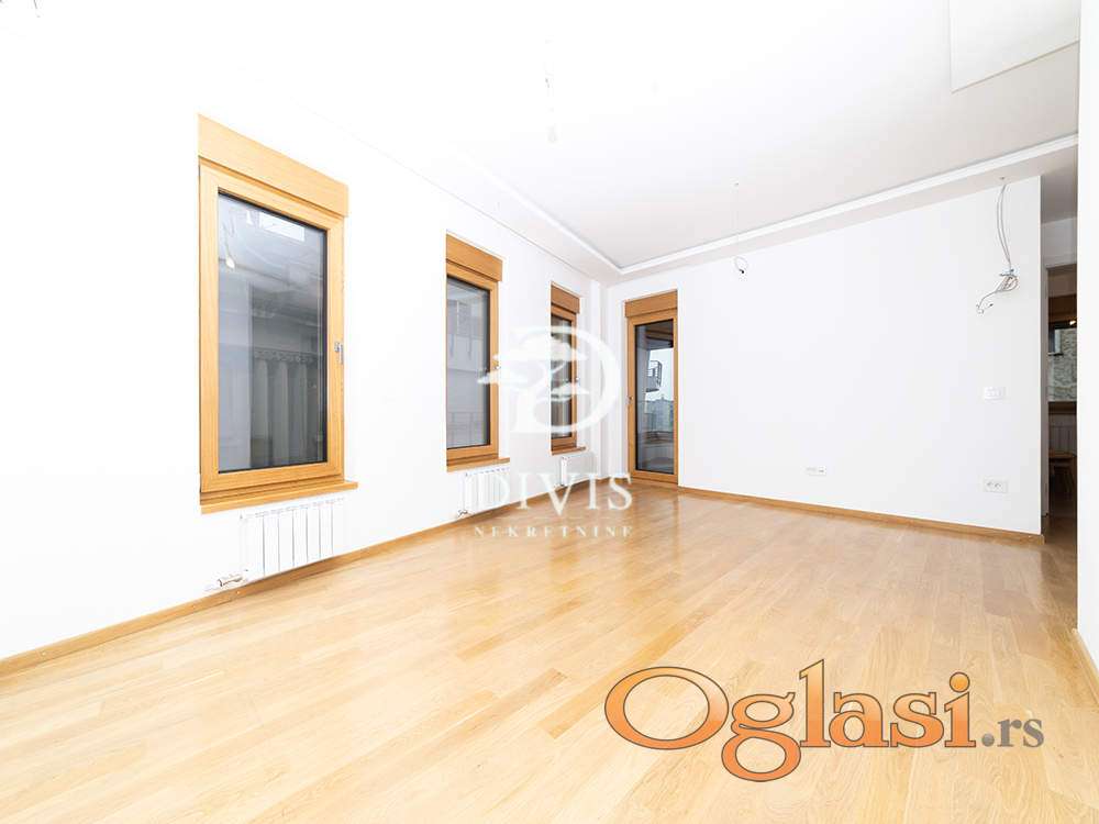 Prazan je i odmah useljiv, sa izuzetno funkcionalnim rasporedom prostorija. Sastoji se od prostranog dnevnog boravka sa izlazom na lepu terasu, odvojene kuhinje i trpezarije, dve komforne spavaće sobe, kupatila, posebnog toaleta i praktičnog vešeraja. Stan je dvostrano orijentisan, veoma svetao i prijatan tokom celog dana, što dodatno doprinosi komforu.