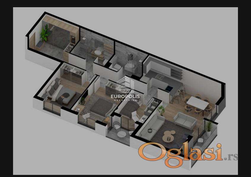 - Predstavljamo vam luksuzan troiposoban stan u kvalitetnoj novogradnji, idealan za porodičan život ili kao investicija. Nalazi se u mirnom, a izuzetno praktičnom delu grada, u blizini svih sadržaja neophodnih za udoban svakodnevni život – škola, vrtića, prodavnica, zelenih površina i javnog prevoza.