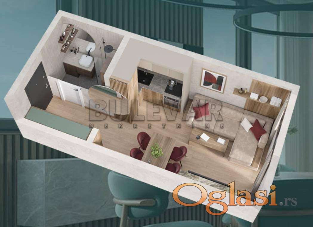 Na prodaju garsonjera u izgradnji . Stambeni kompleks smešten u mirnom delu Vrnjačke Banje, u neposrednoj blizini akva parka, na svega nekoliko minuta hoda od centralnog parka i svih bitnih sadržaja koji pružaju kvalitetan i miran odmor.. Okružen zelenilom, izdvojen od gužve, pruža jedinstven mir i tišinu. Zgrada je izgrađena od najkvalitetnijih materijala, poseduje lift, interfon, kamere, ALU stolarija i roletne, na podovima je višeslojni hrastov parket prve klase, u kupatilu, kuhinji i na terasi granitna keramika, sanitarija renomiranih proizvodjača, inverter klima uredjaj. Stan je po strukturi garsonjera, površine 23m2 a njegovu strukturu čine hodnik, dnevni boravak sa kuhinjom i trpezarijom, i kupatilo . Za sve informacije i razgledanje stojimo vam na raspolaganju, radnim danima od 09-19h i subotom od 09-17h. Ovu i druge nekretnine sa većim brojem fotografija možete pogledati na našem sajtu: bulevarnekretnine.rs, kontakt: info@bulevarnekretnine.rs, usluga besplatna. Čekamo Vas. Telefon 034/330808 i 060/0544253. Bulevar Nekretnine 034, Kragujevac, broj u registru posrednika: 1278.