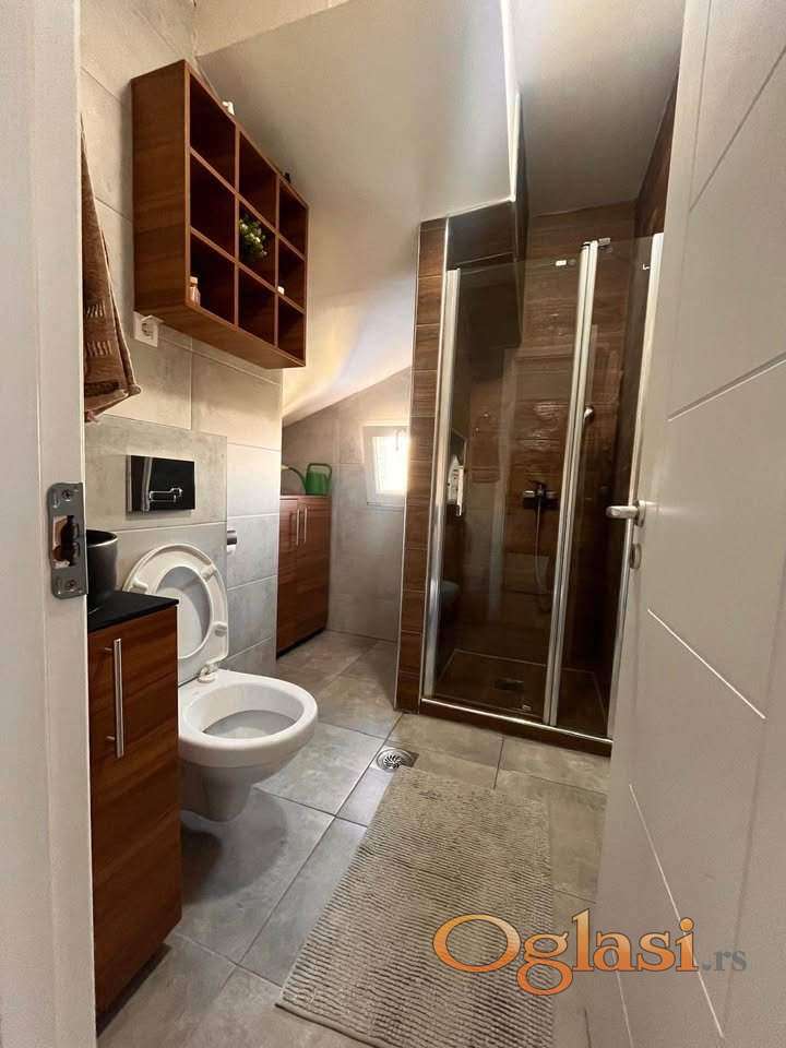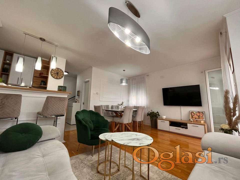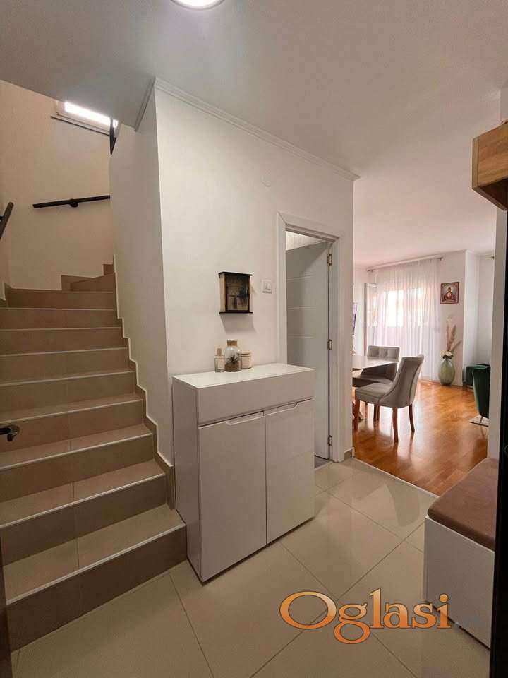 Petosoban dupleks, Novo Naselje - Satelit. 100m2 korisna povrsina, 120m2 podna. Prodaje se kompletno sa namestajem. Grejanje se kontrolise kalorimetrima, voda je protocna topla.