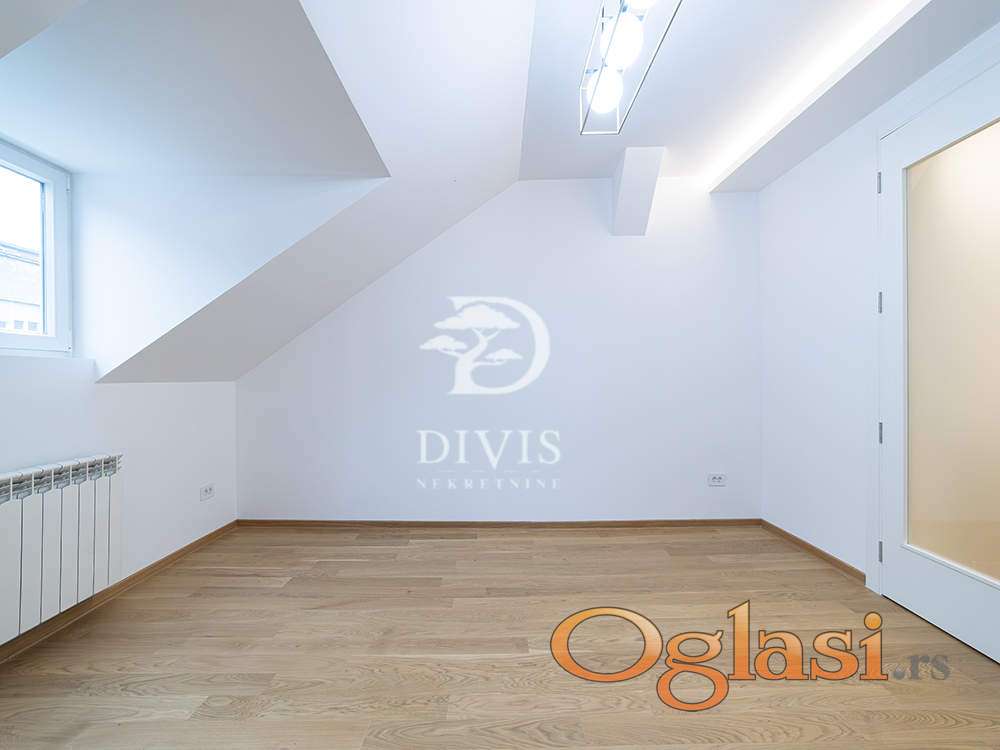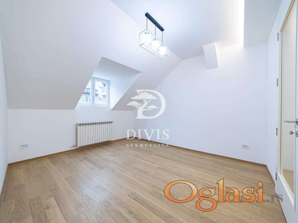 Stan je na četvrtom spratu zgrade bez lifta, uknjižen na 101 m², dok mereno sa kosinama ima oko 131 m². Prostor je trenutno povezan u jednu celinu, ali se jednostavno može pregraditi u dve potpuno odvojene stambene jedinice, što ga čini savršenim i za porodični život i za investiciju kroz mesečni ili kratkoročni zakup.