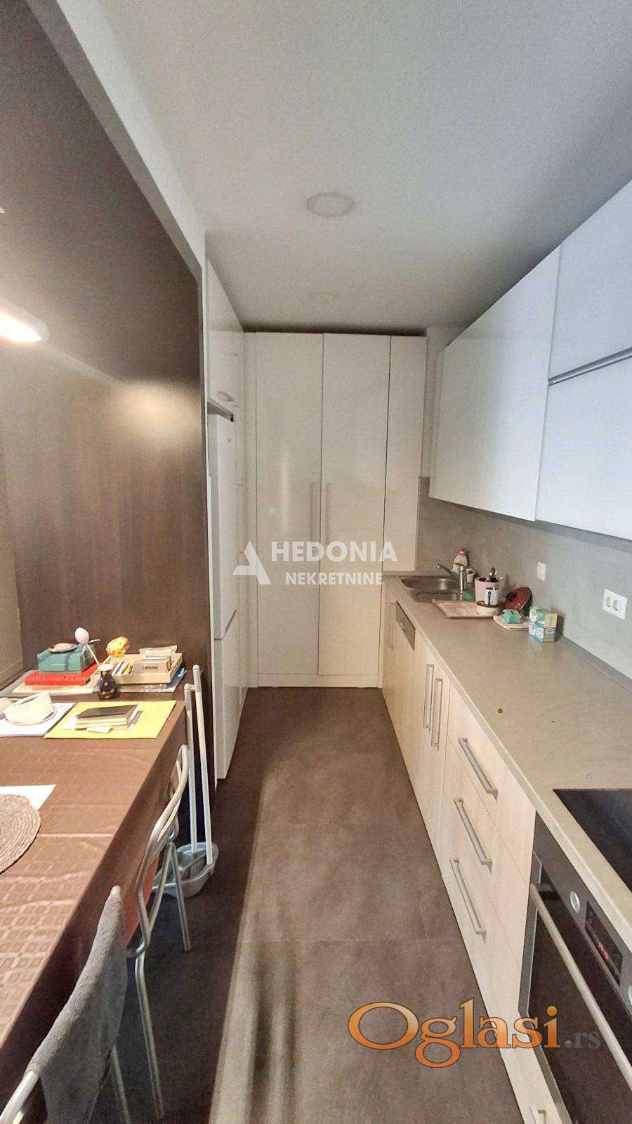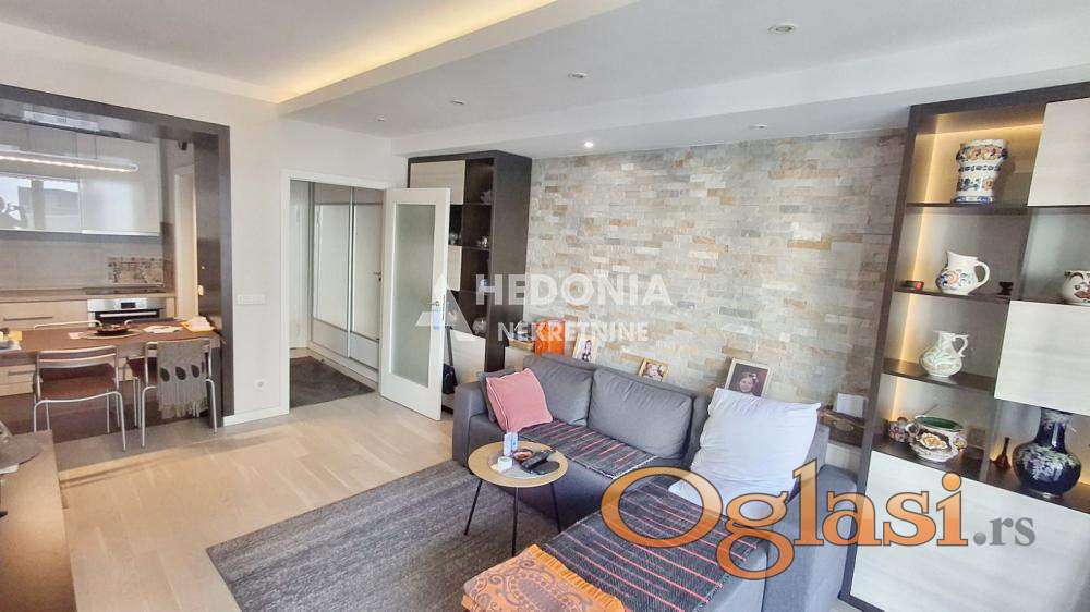 U prestižnom naselju na Novom Beogradu, stambeno - poslovnom kompleksu West 65, koji je izvanredan primer spoja savremene umetnosti i arhitekture, nalazi se ovaj trosoban stan. Impresivna izgradnja je učinila da ovaj deo grada postane simbol uspešnosti i kreativnosti. U West-u 65 se, osim modernih, po najsavremenijoj tehnologiji građenih zgrada, vodilo računa i o pejzažnom uređenju. U centru kompleksa nalazi se prelepo osvetljena fontana, pa ćete se osećati kao na moru. Uz veseli žamor ljudi iz okolnih kafića i restorana, učiniće da se osećate zdravo i raspoloženo. Deca, stariji sugrađani kao i kućni ljubimci su zaštićeni i sigurni u ovom kompleksu koji je sinonim za oazu mira, udobnog života i sveukupne lepote. Kompleks ima dvadesetčetvoročasovno fizičko i video obezbeđenje. Stan je nov, luksuzan i komforan. Svetao je, funkcionalan i sastoji se iz ulaznog hodnika, dnevnog boravka sa kuhinjom i trpezarijom, dve spavaće sobe, dva kupatila i terase. Mogućnost kupovine garažnog mesta ali nije uslov.