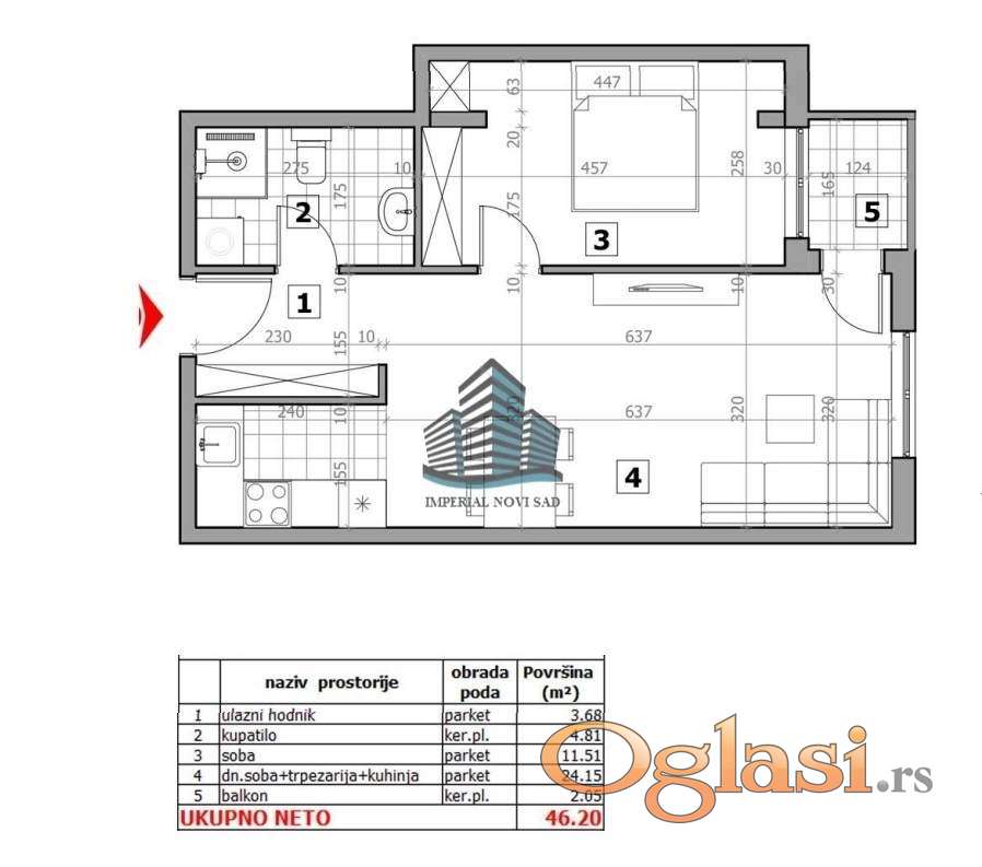 | Kvadratura: | 46m2 |