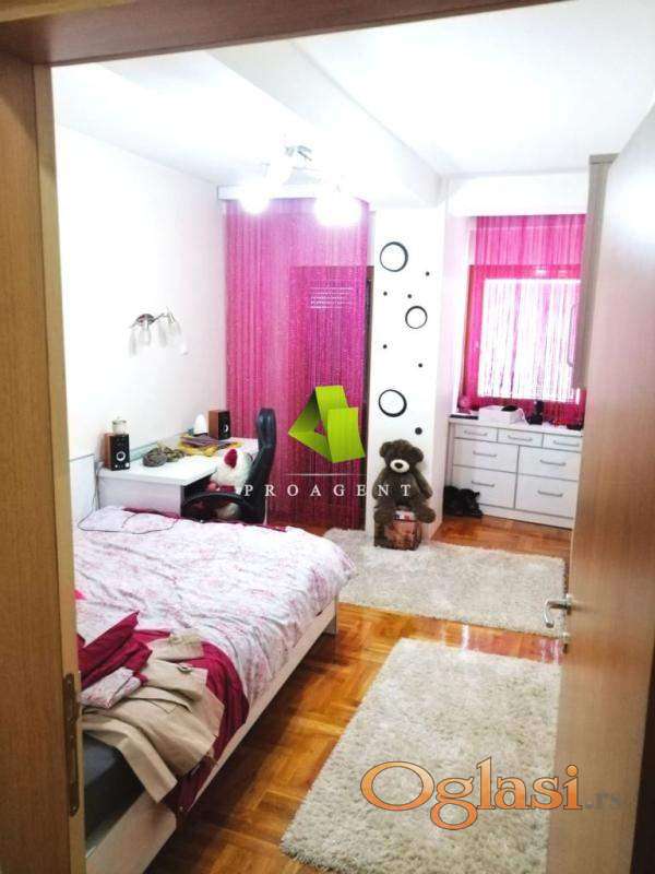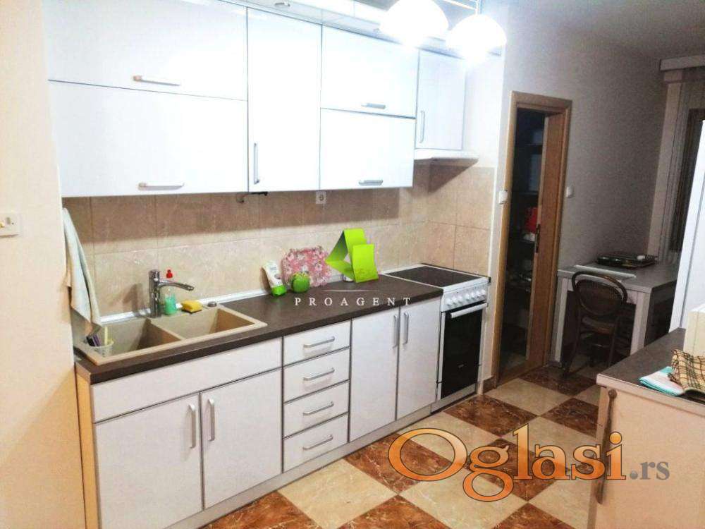 U ponudi je komforan trosoban stan na odličnoj lokaciji u centru. Površine je 95m2, nalazi se na IV spratu stambene zgrade sa liftom. Stan se odlikuje funkcionalnošću i dobrim rasporedom prostorija i sastoji se iz: ulaznog hodnika, velike dnevne sobe sa trpezarijom, kuhinje sa špajzom, dve spavaće sobe, dva kupatila, dve terase koje su zatvorene, kao i posebnog dela gde je garderober. Na podu je parket, stolarija je PVC profila, grejanje je etažno ( ima svoj električni kotao za grejanje). Stan je veoma svetao i topao jer je okružen sa svih strana drugim stanovima. Prodaje sa stvarima kompletno (kao na slikama). Nalazi se na atraktivnoj lokaciji, u blizini svih važnih institucija, gradskih dešavanja i ostalih sadržaja neophodnih za komforan i kvalitetan porodičan život. Hvala Vam što ste pogledali oglas. Za više informacija o ovoj ili drugim nekretninama i zakazivanje razgledanja kontaktirajte agenta na broj telefona iz oglasa (poziv, sms, viber) ili putem e-maila. Kompletnu ponudu dostupnih nekretnina možete pronaći na našem sajtu. Agencija Proagent nekretnine je upisana u Registru posrednika pod brojem: 940.