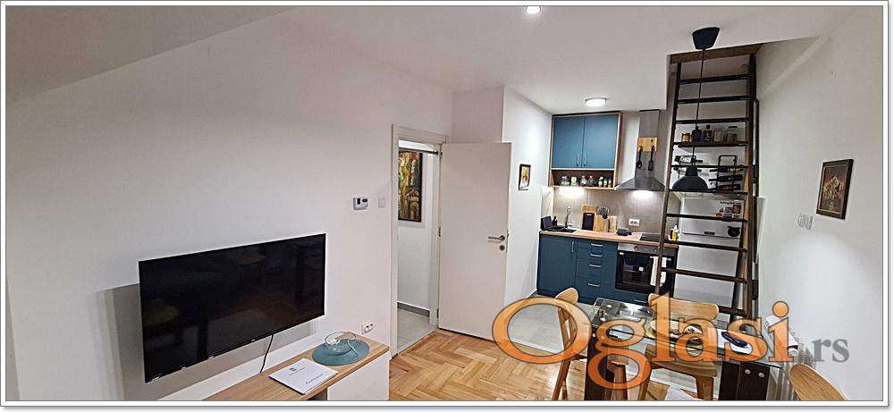 Žarkovo, Marine Veličković, 1.5 stan, potkrovlje (nivo VIII sprata), 32m2(T) + galerija (podne površine oko 20m2), nov, EG, lift.