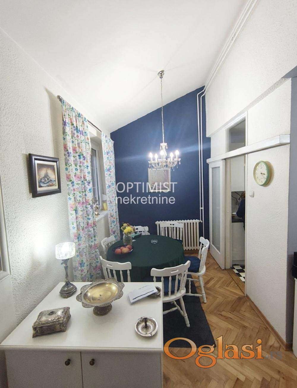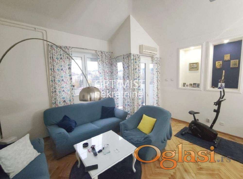 Optimist nekretnine Vam nude odličan, funkcionalan i svetao četvorosoban dupleks, dvostrano orijentisan (jug-istok), na petom, poslednjem spratu uredne i dobro održavane zgrade sa liftom, u miru, tišini i zelenilu Miljakovca, u ulici Stevana Opačića nadomak Miljakovačke šume.
