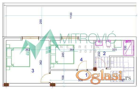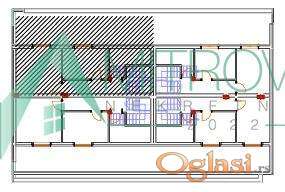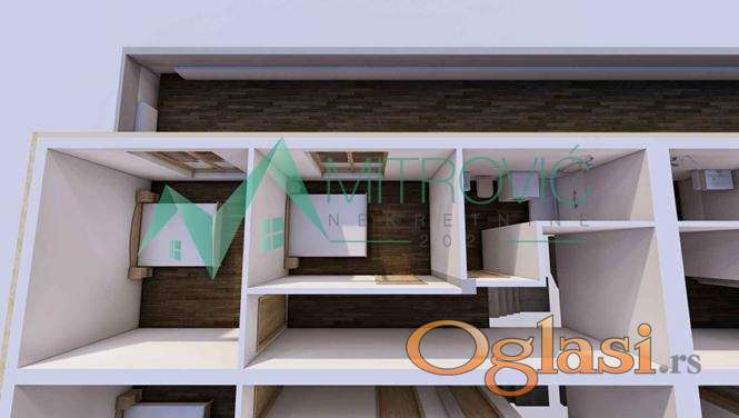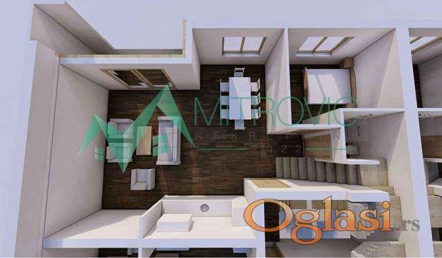 Stan se sastoji iz dve etaže. Prva etaža: ulazni hodnik, prostran dnevni boravak spojen sa kuhinjom i trpezarijom, odvojena soba, kupatilo i terasa. Druga etaža: dve odvojene sobe, kupatilo i velika terasa. Obzirom na stepen izgrađenosti objekta postoji mogućnost izmene rasporeda prostorija u skladu sa željama kupca.