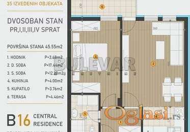 U ponudi su stanovi u izgradnji stambenog objekta u blizini Glavne crkve, Kragujevačke gimnazije, Velikog parka i gradske pijace. Stan sa površinom od 45,55 m² dostupan je na prvom, drugom, trećem i četvrtom spratu, a cena je sa PDV-om. Postoji mogućnost povraćaja PDV-a, kao i kupovina putem stambenih kredita banaka. Planirani završetak radova je u julu 2027. godine. Cena garažnog mesta u podrumu objekta iznosi 10.000,00 € sa PDV-om, dok cena parking mesta iznosi 5.000,00 € sa PDV-om.