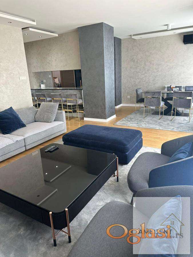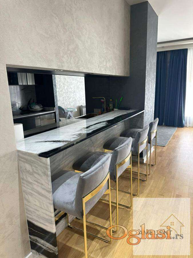 • Luksuzni materijali, pažljivo biran nameštaj, kompletna bela tehnika i luksuzna rasveta po celom stanu