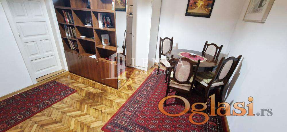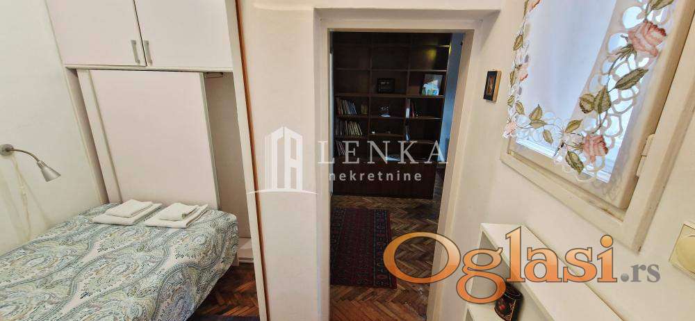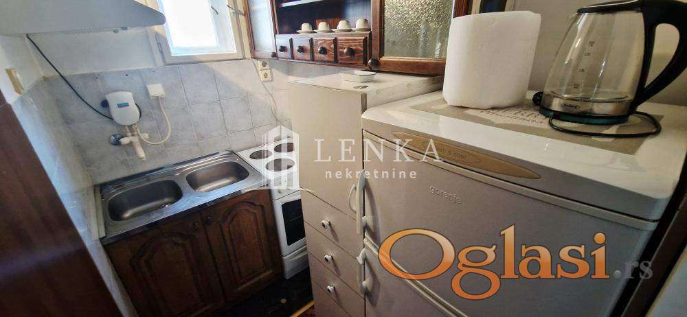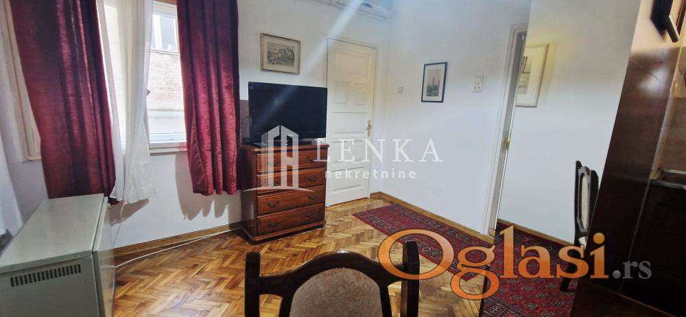 Prodaje se lep i potpuno namešten jednosoban salonac (visina plafona 3m) uknjižen na 23m2 +3m2 terasa, smešten u mirnoj ulici u neposrednoj blizini centra grada. Navedena mikrolokacija odlično je povezana sa drugim delovima grada i obiluje zelenilom. Na udaljenosti od svega 5-10 minuta peške od stana nalaze se: Knez Mihajlova,Trg Republike, Skadarlija,osnovna i srednje škole , vrtići,dom zdravlja,Tržni centar, pijaca,i prodavnice sa robom široke potrošnje, restorani, pekare, mesare, piljarnice, kafići, benzinska pumpa, autobuske stanice.... Stan se nalazi na prvom spratu zgrade i dvorišno je orijentisan. Na ulazu u stan prostire se hodnik iz kojeg se ulazi u ostale prostorije. Iza prvih vrata sa leve strane hodnika nalazi sespavaća soba a provo komforni open space prostor koji čine kuhinja svedenog dizajna čiji detalji zajedno sa trpezarijskim delom ovaj kutak čine mestom za druženje i uživanje u hrani i piću. U nastavku ulazi se u kupatilo sa stajaćom kadom,pratećim sanitarijama mestom za veš mašinu,bojlerom i prozorom koji ovom preostoru daje prirodno svetlo i ventilaciju. Zahvaljujući zgodnom rasporedu prostorija, stan možete brzo i lako pretvoriti i u svoju kancelariju ili poslovni prostor.. Ispred objekta nalaze se obeležena javna parking mesta. Kupac plaća proviziju 2%