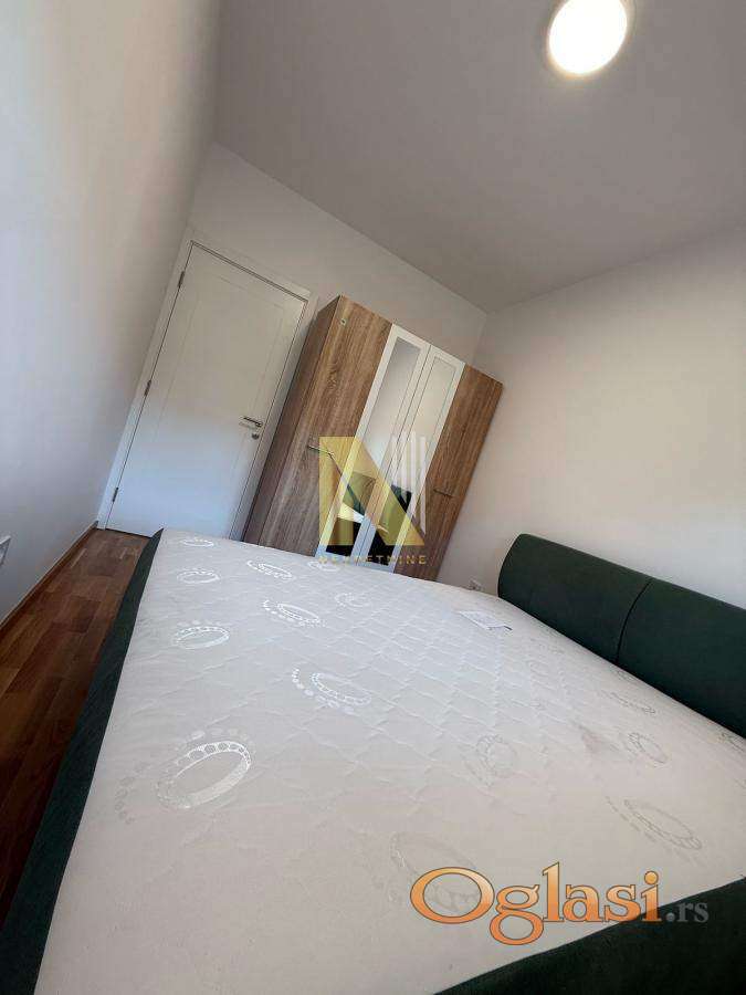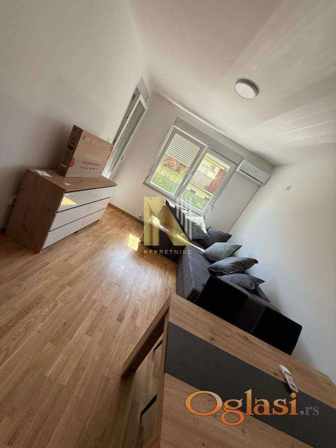 Stan je potpuno opremljen svim neophodnim novim modernim i kvalitetnim nameštajem i električnim uređajima, poseduje klima uređaj i sigurnosna vrata.