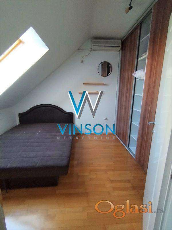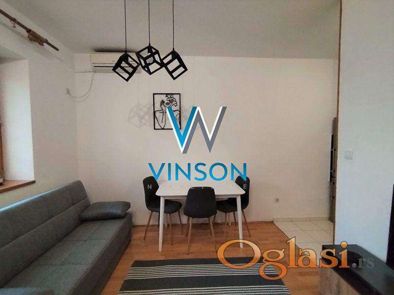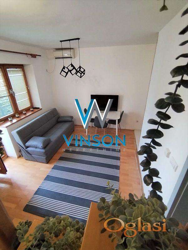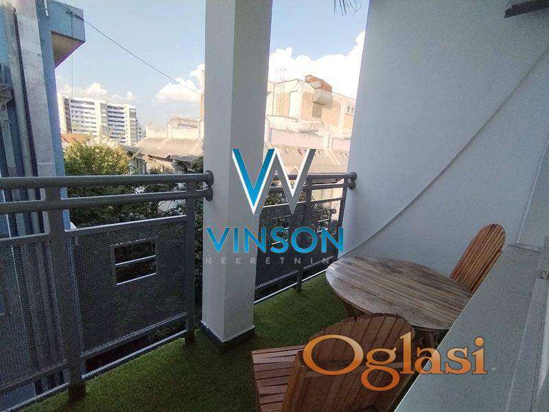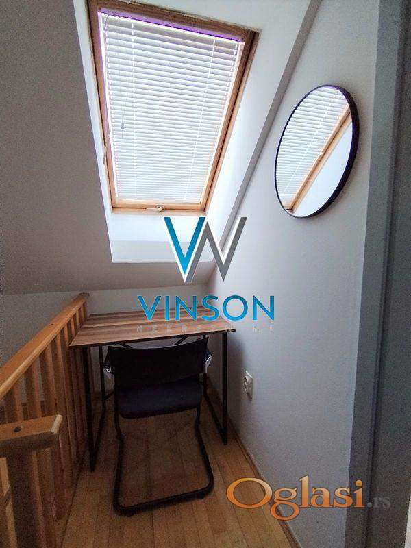 Novi Sad, Centar, ulica Železnička. Predstavljamo odličan, po strukturi dvosoban dupleks stan na jednoj od najatraktivnijih lokacija za stanovanje. Nalazi se u neposrednoj blizini strogog centra grada (pešačke zone), Pupinove palate, Spensa, Bulevara oslobođenja, više obrazovnih i državnih institucija... Donju etažu ovog stambenog prostora čini dnevni boravak sa izlazom na terasu, uvučena kuhinja, kupatilo sa ležećom kadom, dok gornju etažu čini degažman, spavaća soba, toalet. Stan je orijentisan ka mirnoj dvorišnoj strani. Prodaje se kompletno namešten (nameštaj prikazan na fotografijama). Useljiv odmah. Uknjižen. (Vinson nekretnine, Novi Sad, Reg. br. posrednika: 1085)