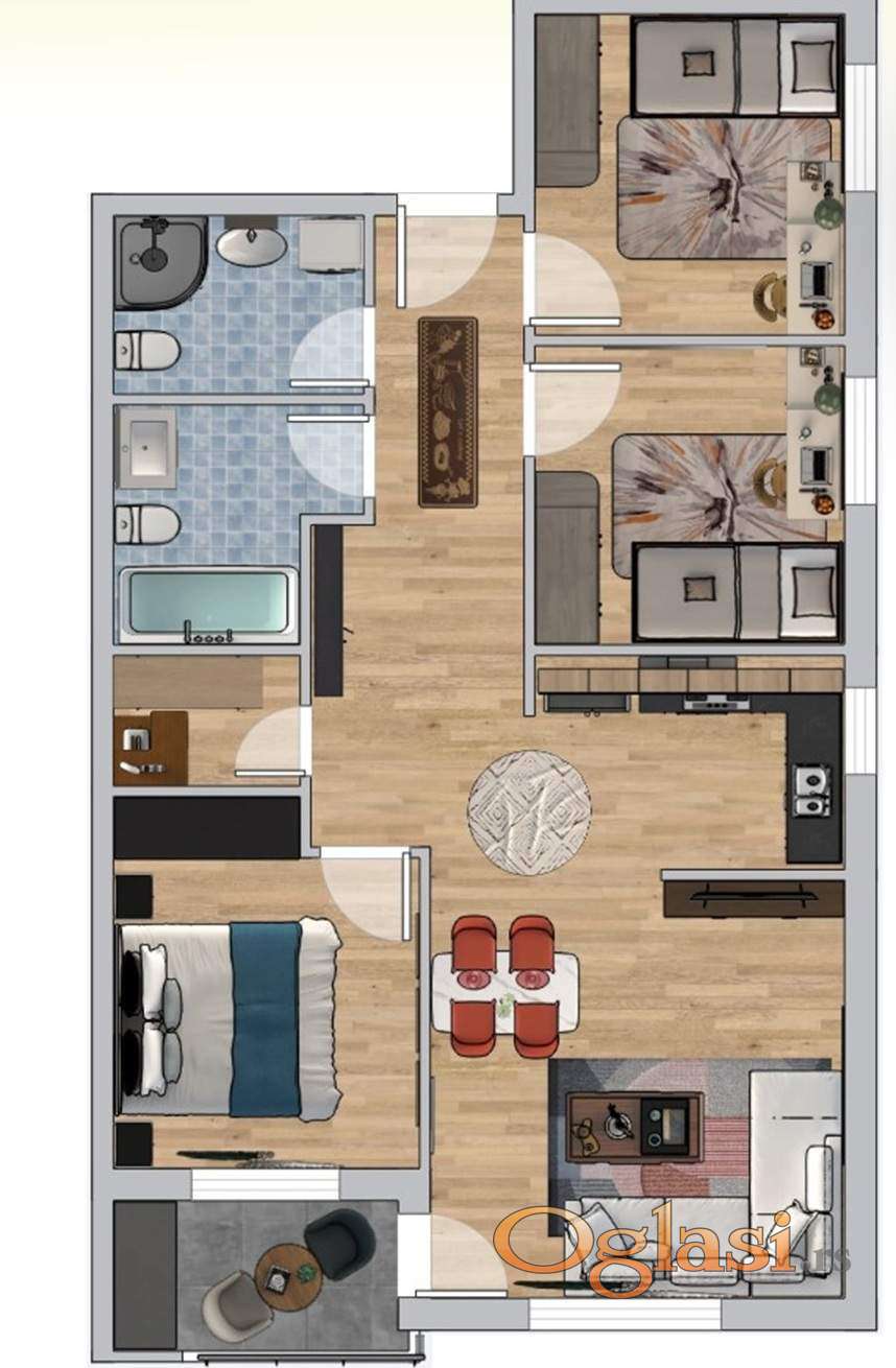 U ponudi je troiposoban stan, 72m2, na Adicama, lokaciji koja se ubrzano razvija. Po strukturi je troiposoban: dnevna soba i trpezarija sa kuhinjom otvorenog koncepta, tri odvojene spavaće sobe, kupatilo, hodnik i terasa. Objekat se gradi po savremenim standardima: ALU stolarija visoke termičke i zvučne izolacije, kvalitetne sanitarije i kvalitetne zidne i podne obloge. Prijatno okruženje u zgradi sa manjim brojem stanova. Mogućnost povrata PDV-a za kupce prve nekretnine. Idealno za stanovanje ili kao investicija zbog porasta potražnje na ovoj lokaciji. Zavšetak radova u trećem kvartalu 2026. U oglašenu cenu stana uračunata agencijska naknada u iznosu od 3%. Kontakt Stanislava 069/383-1010