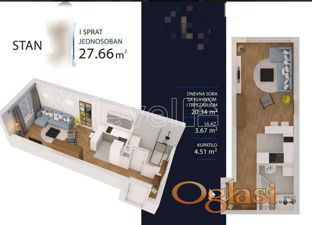 LEVEL PROPERTY, agencija za nekretnine Vam predstavlja odličan jednosoban stan u izgradnji, kvalitetna gradnja, grajanje na gas. Završetak gradnje krajem 2026. Za više informacija pozovite...