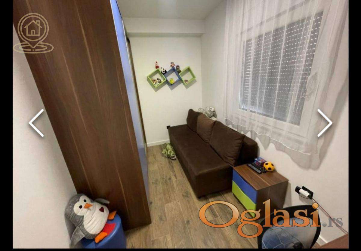 Stan se prodaje kompletno namešten, spreman za useljenje – potrebno je da unesete samo lične stvari! U stanu se nalaze: internet, TV, klima uređaj, veš mašina, kuhinjski elementi, sudomašina, frižider, zamrzivač, mikrotalasna, šporet, rerna, ležaj, plakar i ugradni plakar.