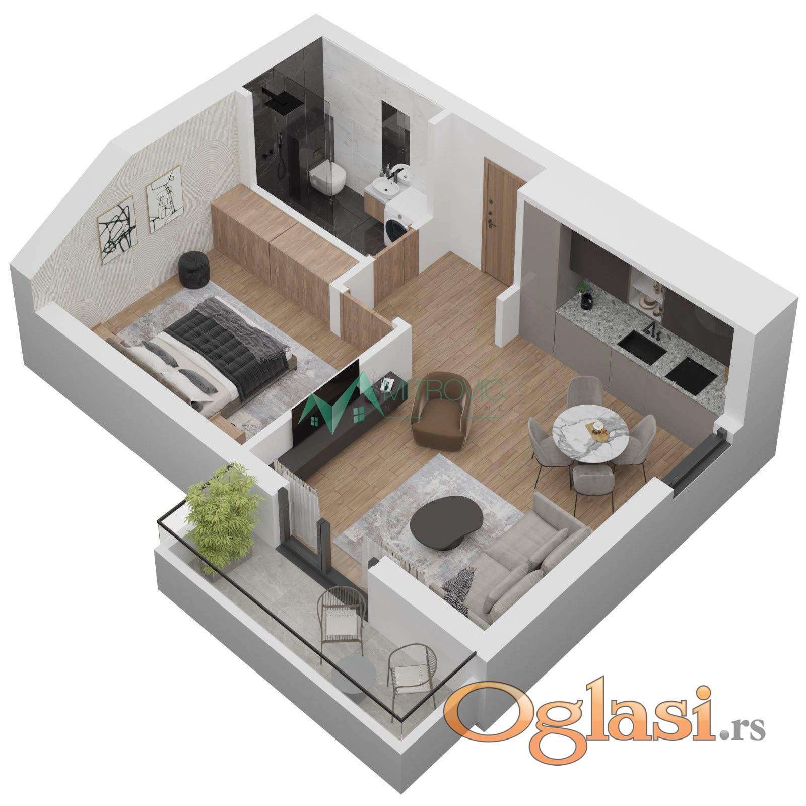 Novi Sad, Sajlovo - Odličan, jednoiposoban stan na mirnoj lokaciji. Nalazi se na II spratu manje urbane vile sa malim brojem stanova što garantuje privatnost i mir. Raspored prostorija: dnevni boravak sa kuhinjom i trpezarijskim delom, spavaća soba, kupatilo i terasa. Ovaj deo grada nema nikakav problem sa parkiranjem. Niski troškovi mesečnih računa - grejanje se plaća po utrošku u toku grejne sezone. Useljivo jun-jul 2026. godine. U cenu uračunata posrednička naknada u iznosu od 3%. Prikazani renderi su idejni prikaz prostora, kupatila i keramike (opreme) koja će se ugrađivati, ne predstavlja realno stanje nekrentine. Kontakt: 069/383-1003