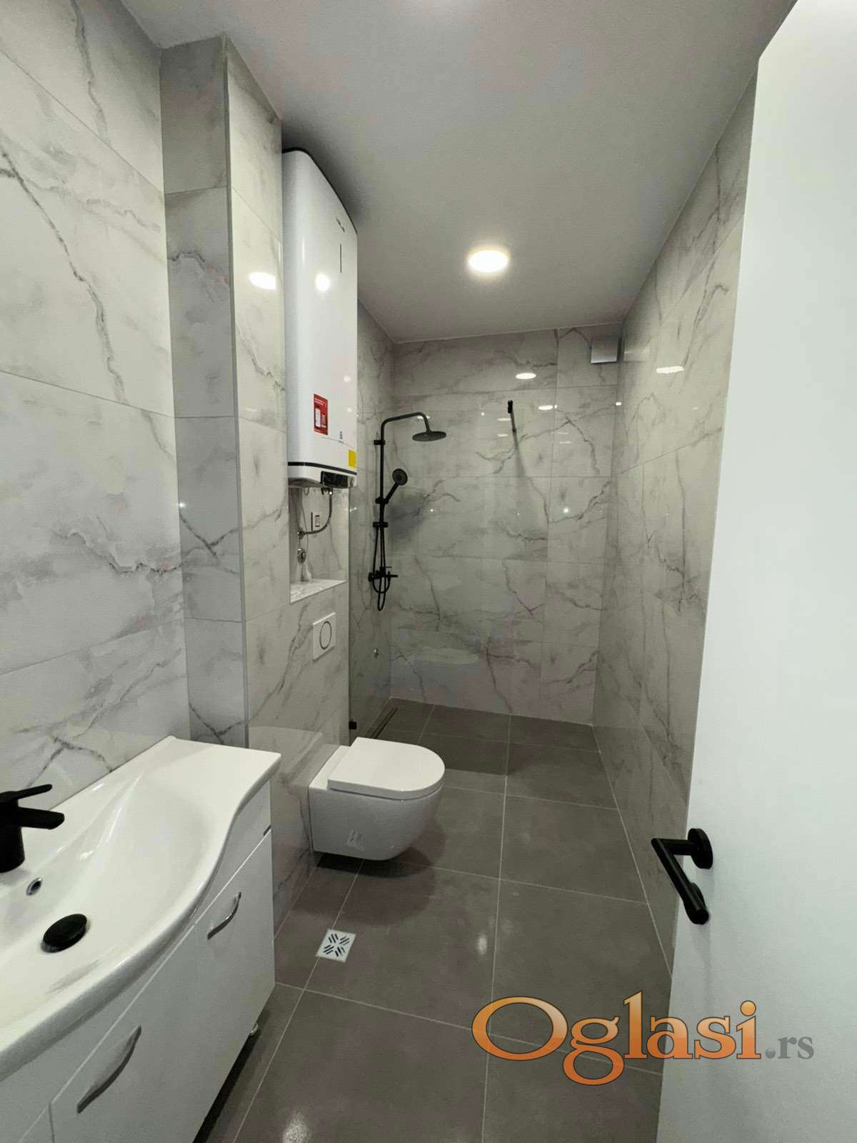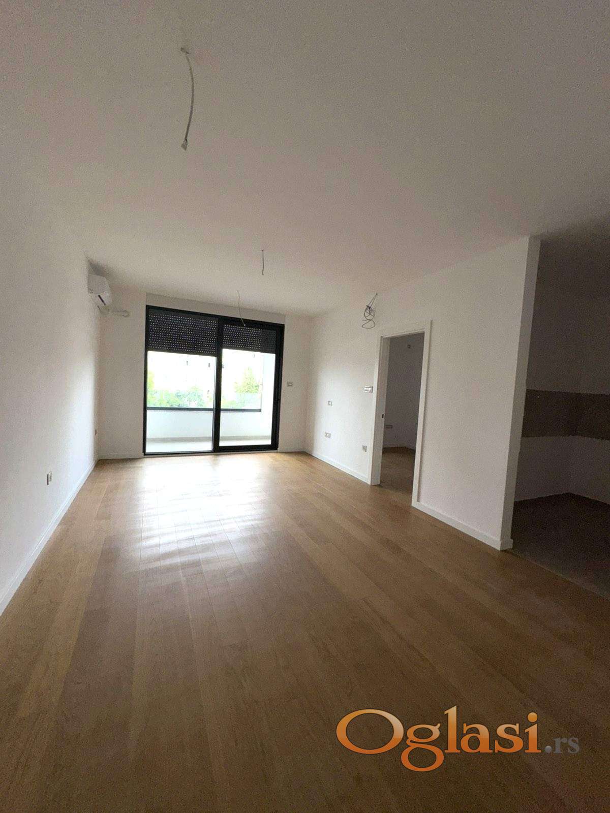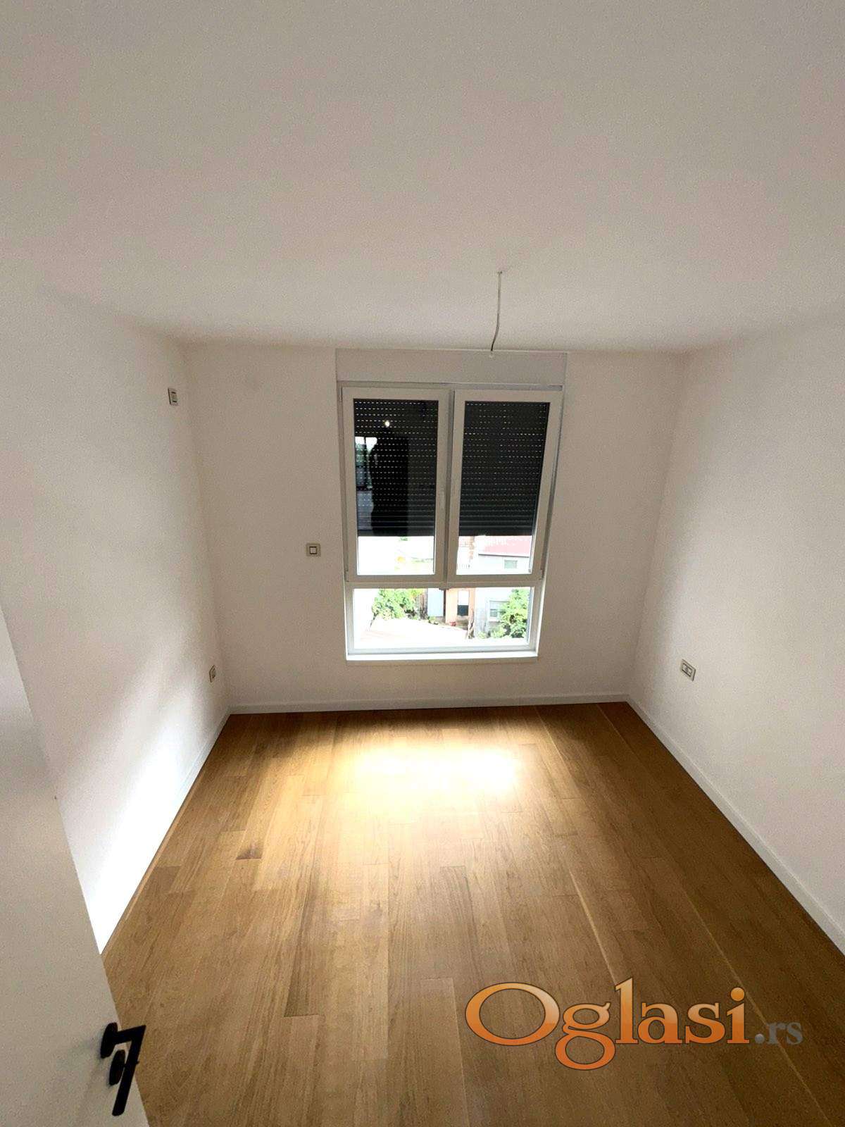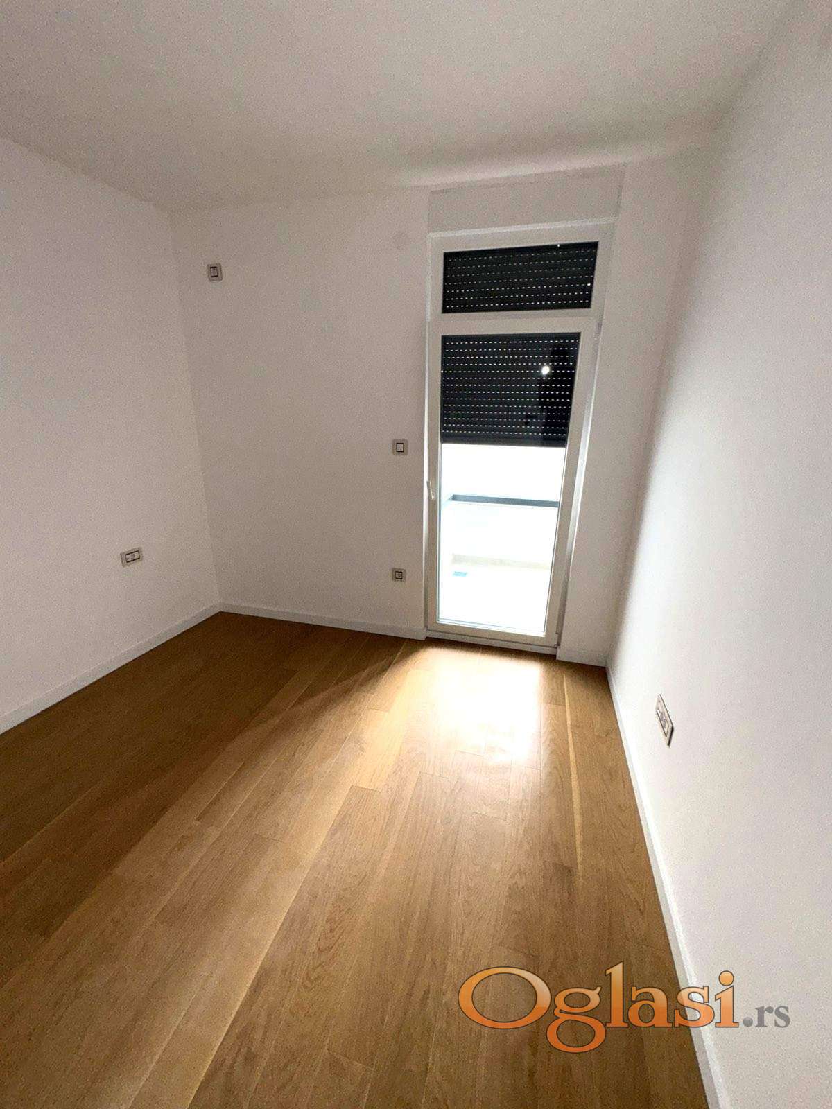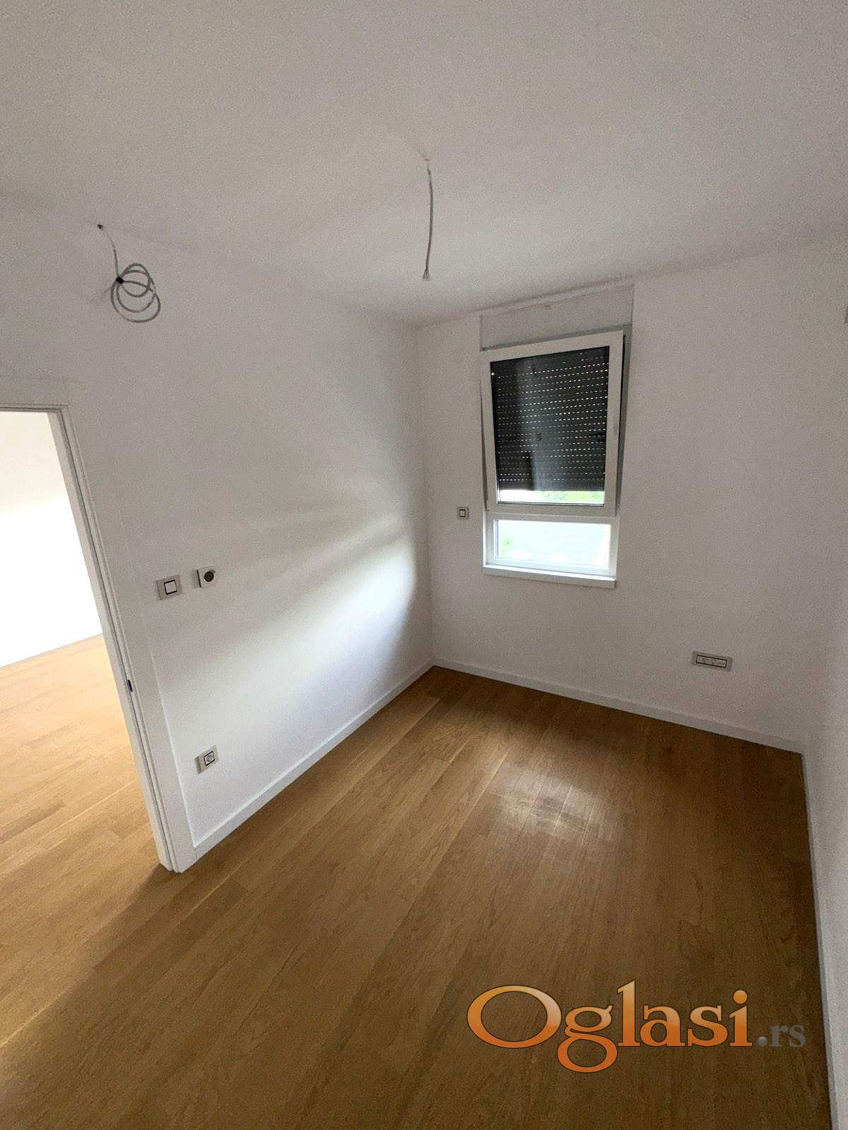 Sigurnosna ulazna vrata, antracit crna pvc stolarija, tarket i keramika prve klase, električne roletne.
