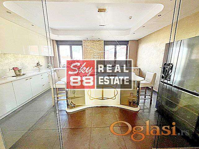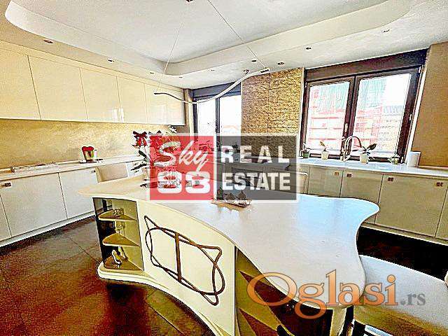 Vracar , neposredna blizina Hrama , 214m2 uknjizena kvadratura , 4 + 5 , lift , cg / zidno i podno grejanje na toplanu , izuzetno luksuzan , perfektan stan , izrazito suncan , sa otvorenim pogledom , visina plafona 2,8m , Alu stolarija , Hrastov parket 1.klase , vrhunske sanitarije i keramika ...