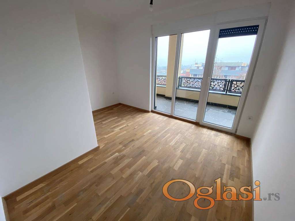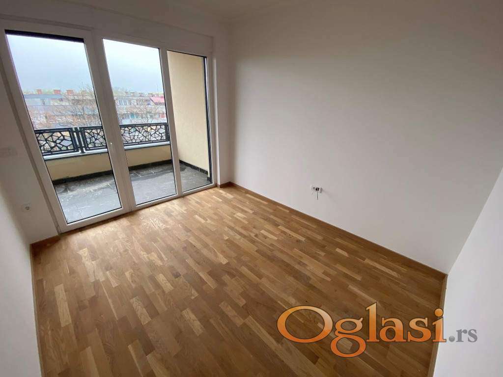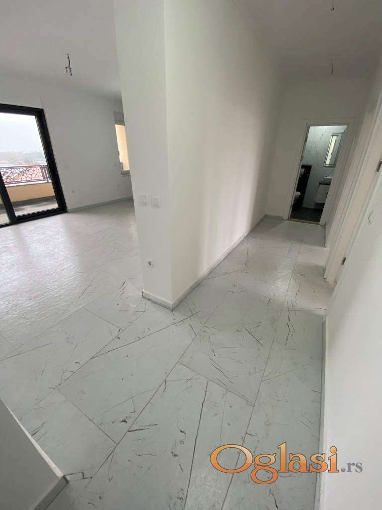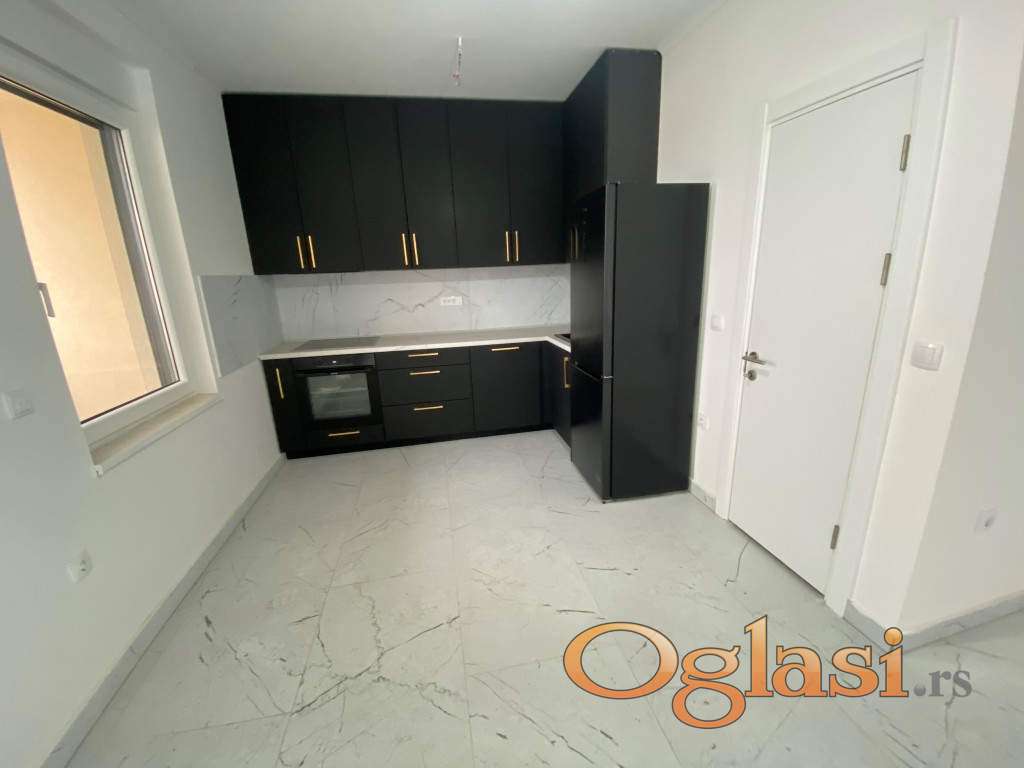 Stan je izuzetno svetao, zahvaljujući savršenoj orijentaciji i velikim prozorskim površinama koje propuštaju prirodnu svetlost tokom celog dana. Raspored je funkcionalan i prilagođen savremenom načinu života: prostran dnevni boravak sa kuhinjom i trpezarijom predstavlja centralni deo doma, dok dve spavaće sobe pružaju mir i komfor, toalet sa ležećom kadom i prostorom za veš mašinu i sušilicu.