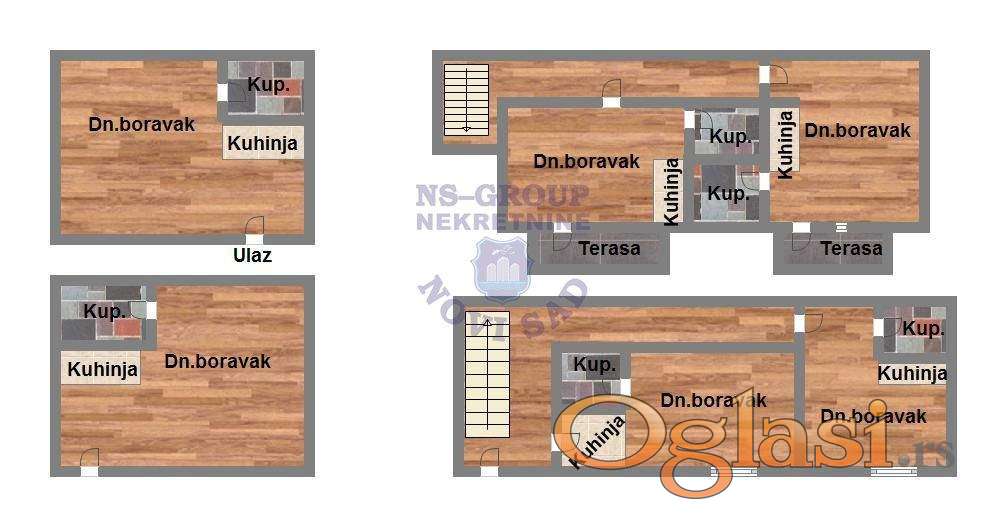 Vrlo specifična nekretnina u ponudi. Prodaje se 6 apartmana kompletno opremljena za izdavanje na dan. U navedenih 123m2 nalaze se dva lokala u funkciji apartmana kao i jedan dupleks koji sadrži još četiri apartmana. Kupuje se kao celina opremljeno za rad bez daljeg ulaganja. Nekretnina se nalazi u samom centru Novog Sada, što je čini vrlo atraktivnom za ovakvu vrstu posla. Za više informacija pozovite naše agente