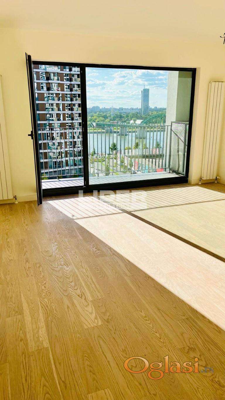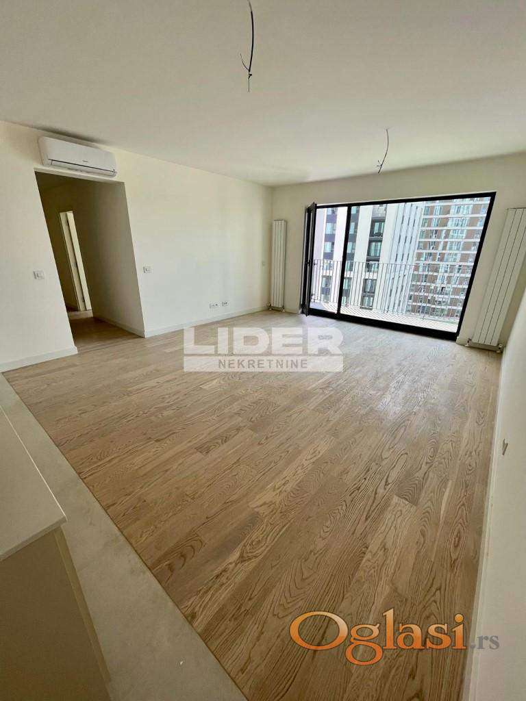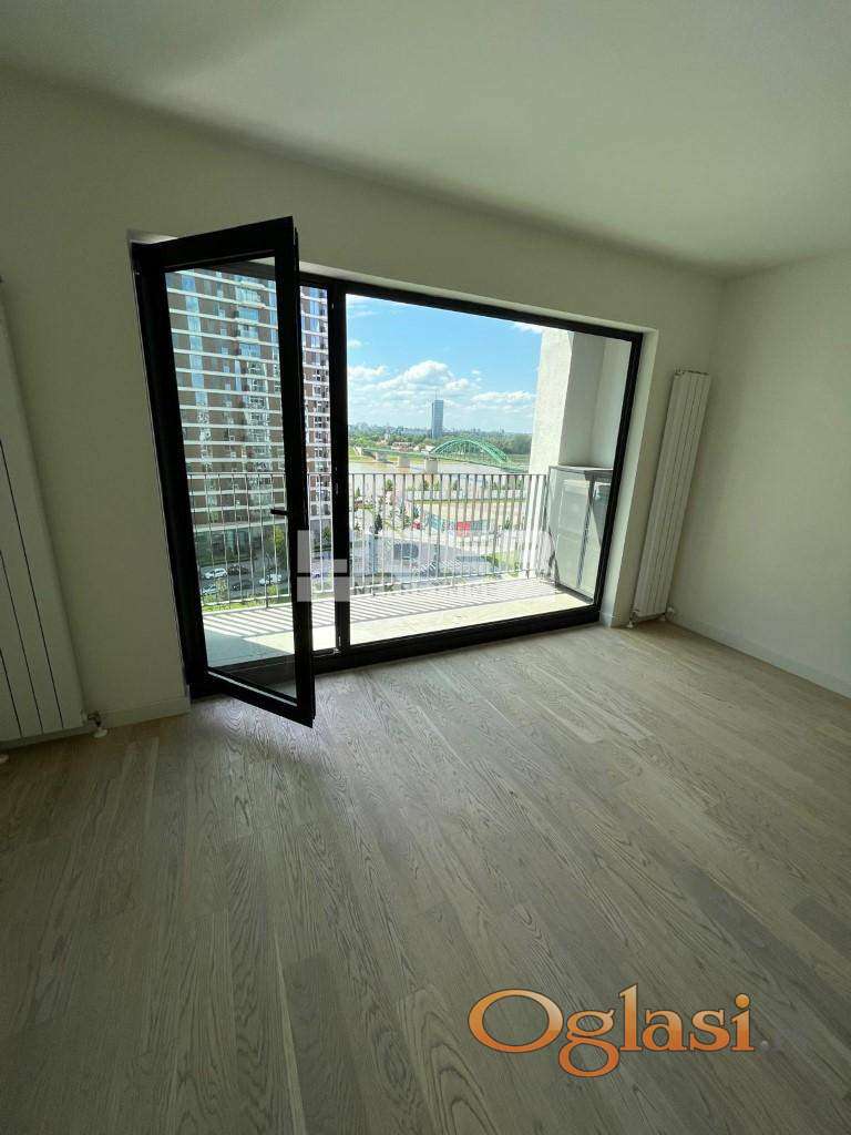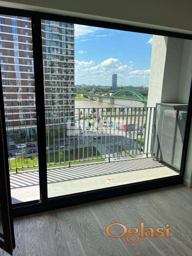 Stan se sastoji iz ulaznog dela, hodnika, kuhinje, dnevnog boravka, velike terase, 2 kupatila, 1 toaleta, vešernice i 3 odvojene sobe - spavaće sobe. 8 sprat - pogled na reku. Postoji mogućnost kupovine garažnog mesta po ceni od 35000e. Klima, lift, interfon, recepcija, video nadzor. Novogradnja. agencijska provizija 2%