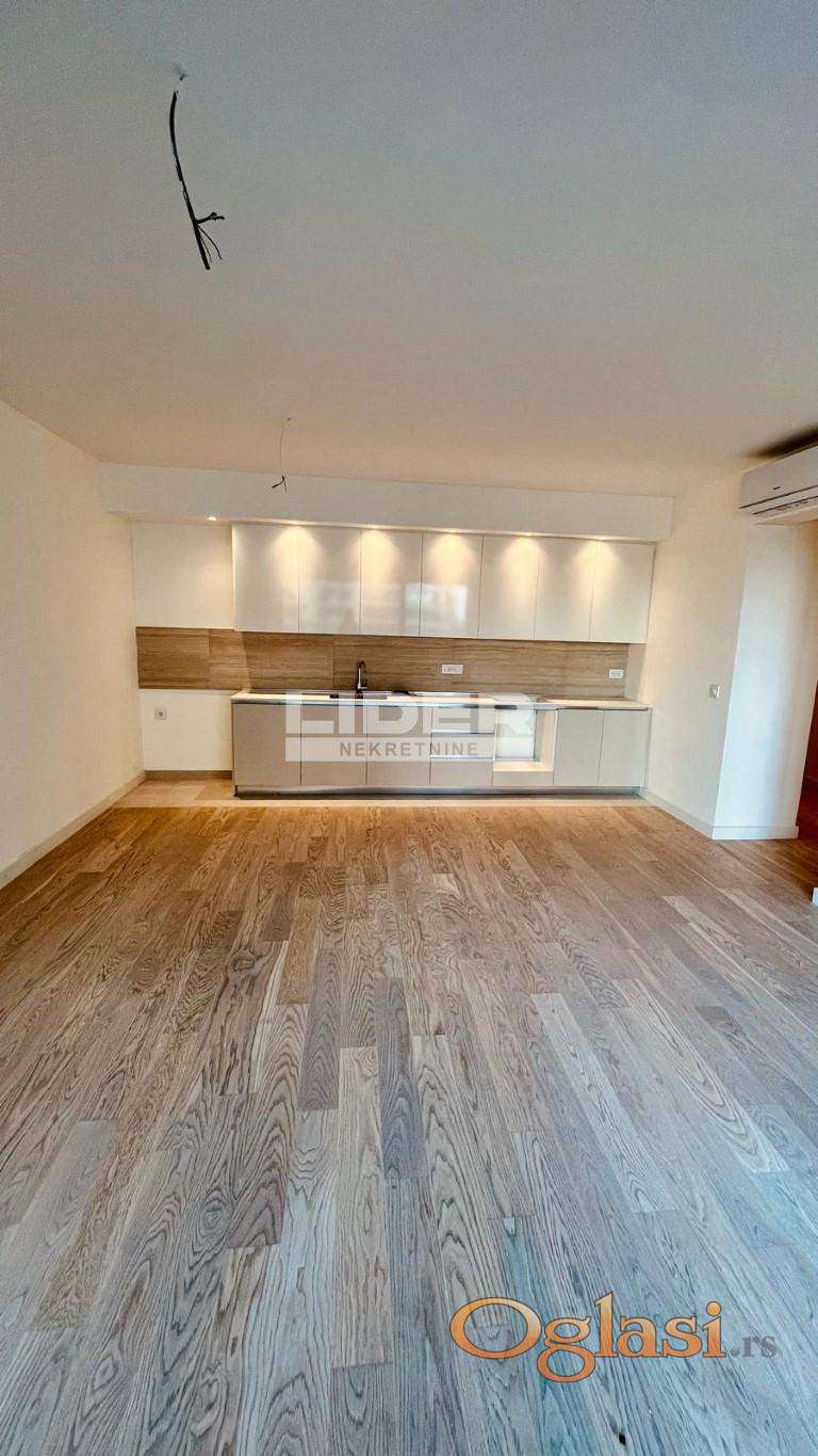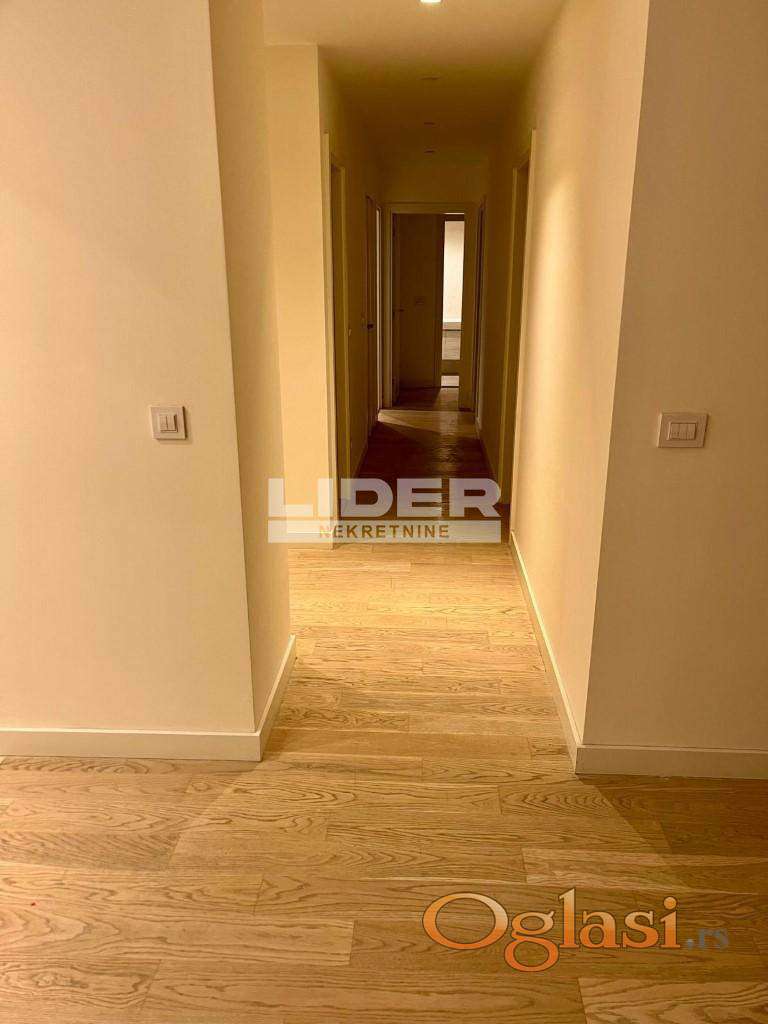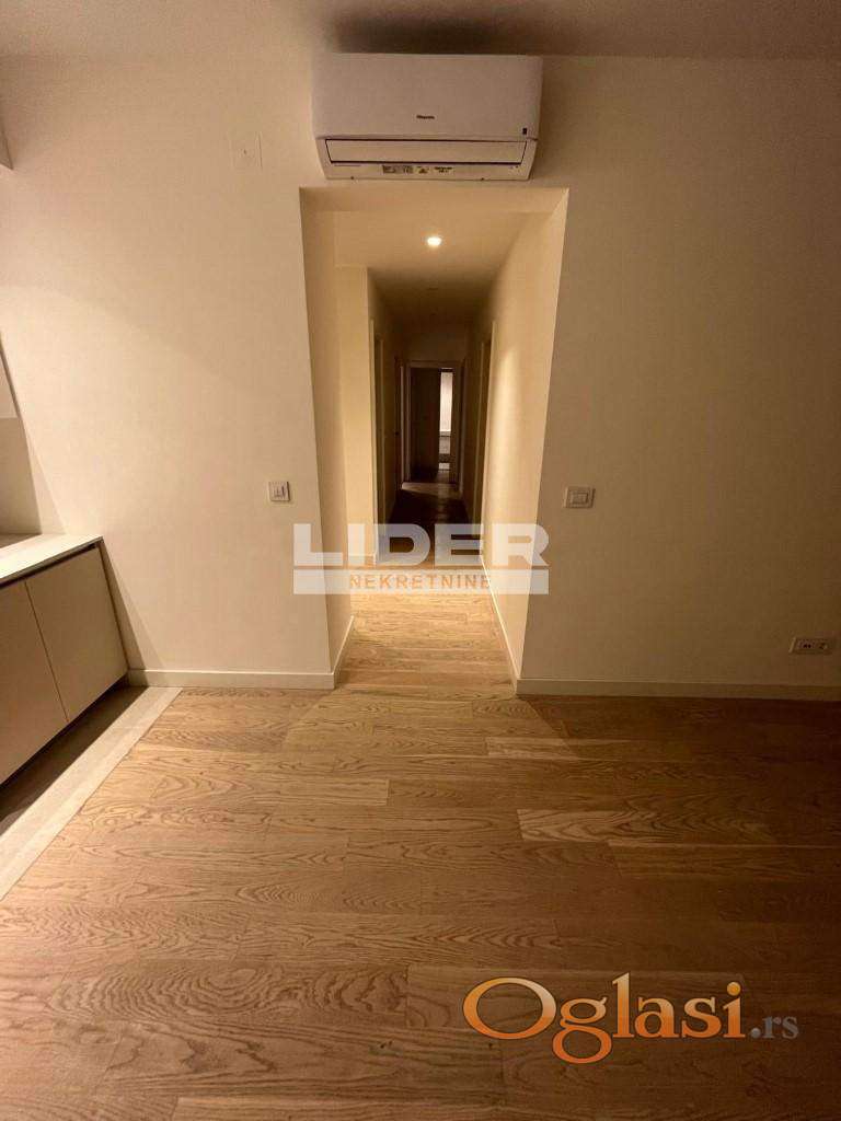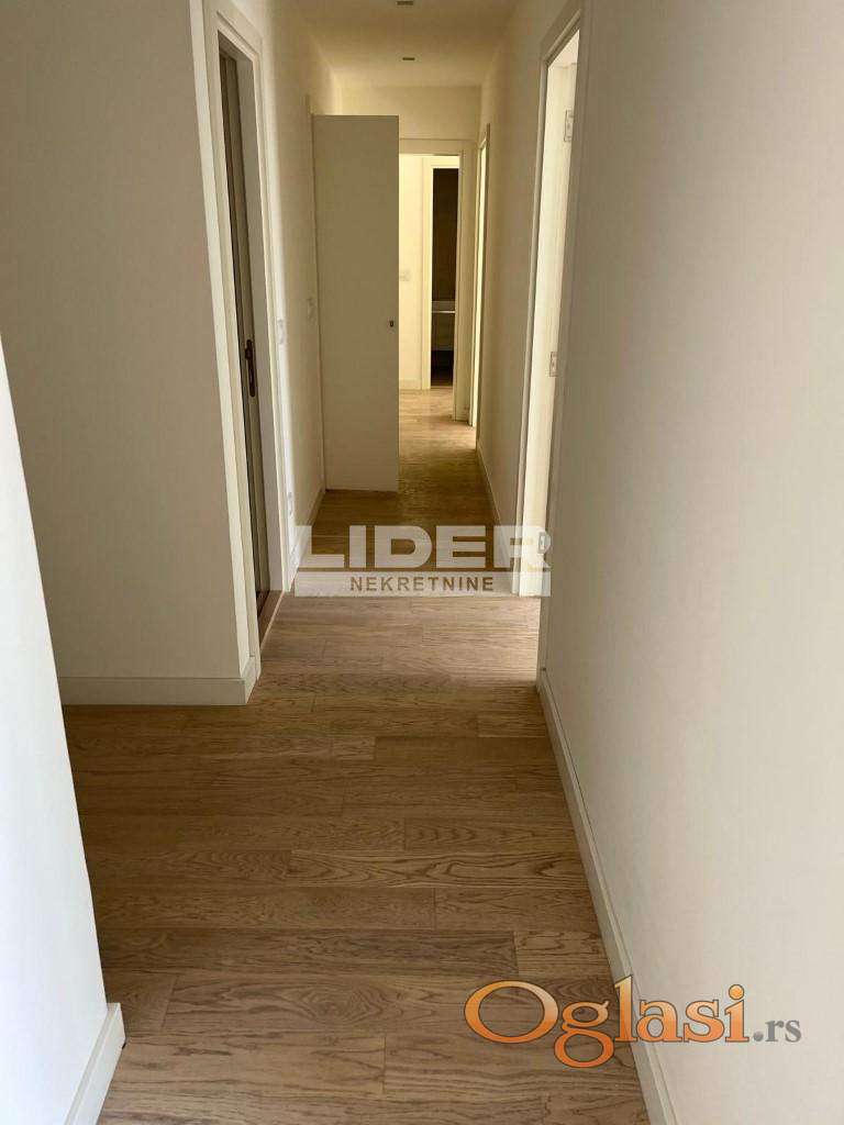 Stan se sastoji iz ulaznog dela, hodnika, kuhinje, dnevnog boravka, velike terase, 2 kupatila, 1 toaleta, vešernice i 3 odvojene sobe - spavaće sobe. 8 sprat - pogled na reku. Postoji mogućnost kupovine garažnog mesta po ceni od 35000e. Klima, lift, interfon, recepcija, video nadzor. Novogradnja. agencijska provizija 2%