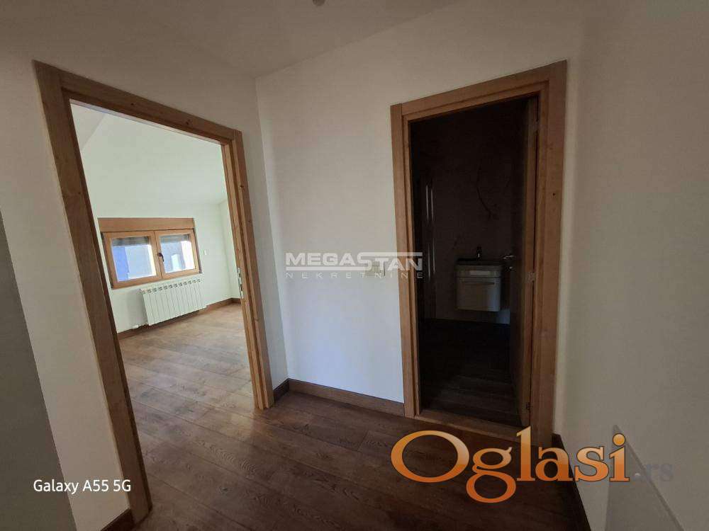 Kvalitetna gradnja, hrastov parket, stolarija aluminijum drvo, uvozna keramika, sanitarije Villeroy & Boch, Remer, Ariston.