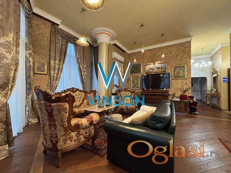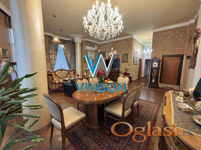 Novi Sad, Grbavica, ulica Miše Dimitrijevića. Izdvajamo iz ponude luksuzan, po strukturi petosoban penthouse stan u neposrednoj blizini Limanske pijace, Osnovne škole ´ Sonja Marinković´, TC Promenada, fakulteta. Ovaj lep i svetao stambeni prostor izgrađen je u zgradi novije gradnje sa lifom koji vodi direktno u stan koji se sastoji od donje etaže i krovne terase sa bazenom. Donju etažu čini prostran i svetao dnevni boravak sa trpezarijom (visina plafona 4m), kuhinja sa ostavom koja ima izlaz na manju terasu, četiri spavaće sobe, dva kupatila, toalet, vešeraj i tri terase. Stan je opremljen centralnim usisnim sistemom. Sve spavaće sobe su klimatizovane. Gornju etažu čini krovna terasa na koju se dolazi stepenicama iz stana. Terasa je površine oko 150m2 i ima veliki bazen dimenzija 8x4 sa opremom za filtiranje vode. Mogućnost kupovine garažnog parking mesta. Video nadzor. Uknjižen. Useljiv po dogovoru. (Vinson nekretnine, Novi Sad, Reg. br. posrednika: 1085)