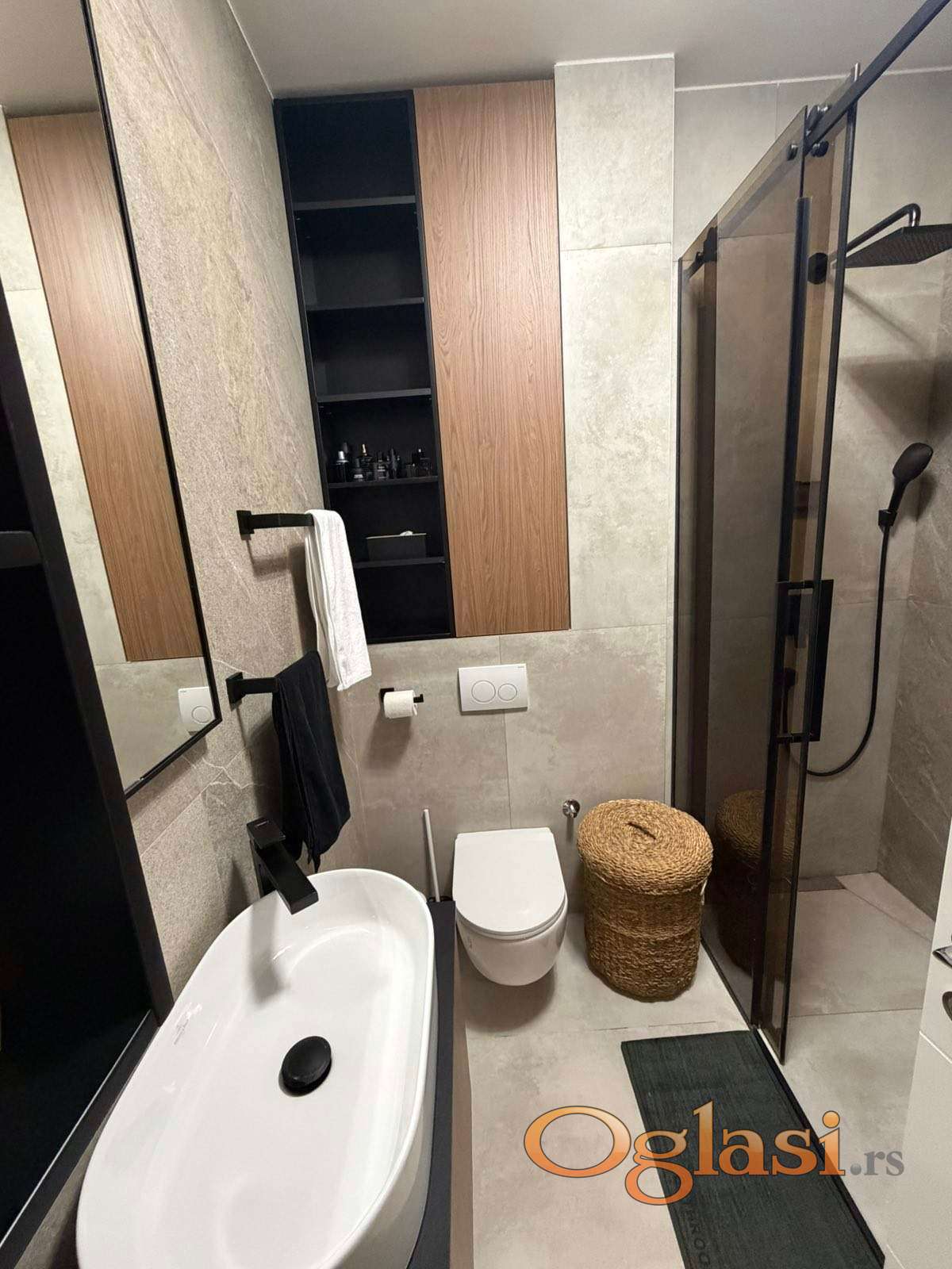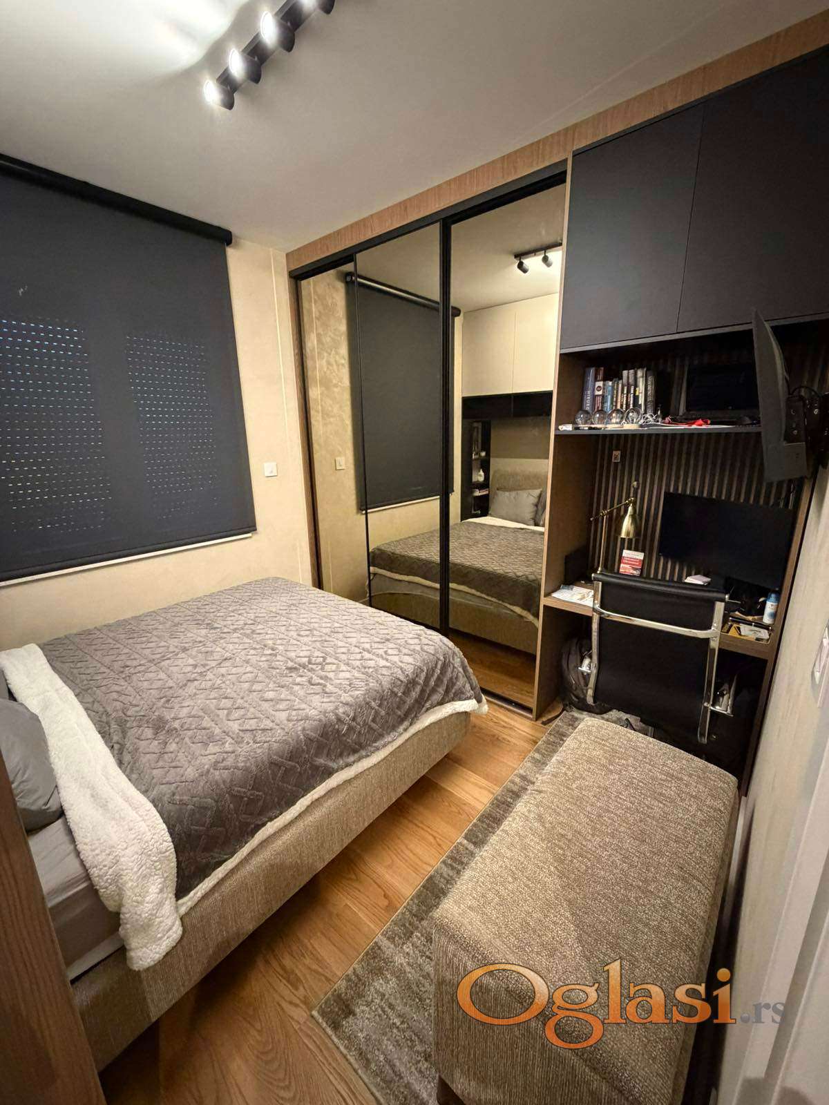 Enterijer odiše elegancijom i savremenim luksuzom – gotovo kompletna stolarija izrađena je od medijapana po meri, sa jasnim akcentom na praktičnost, dugotrajnost i besprekoran dizajn koji odgovara potrebama modernog načina života. Bela tehnika renomiranih proizvođača je pažljivo birana, potpuno nova i u garanciji, uz dodatno ugrađene filtere za prečišćavanje vode, što dodatno doprinosi komforu i kvalitetu stanovanja.