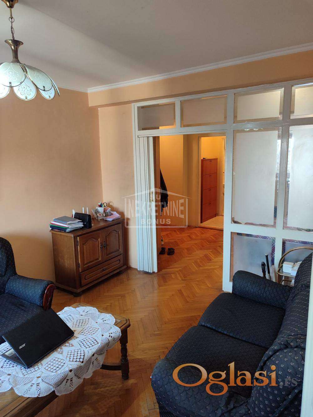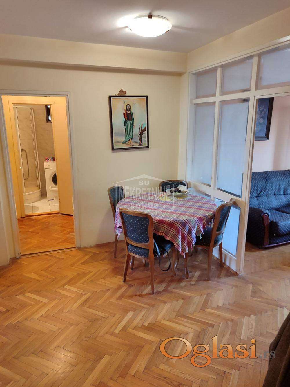 Tri spavaće sobe, komplet električne instalacije, automatski osigurači, nove vodovodne instalacije, može zamena za manji stan uz doplatu.