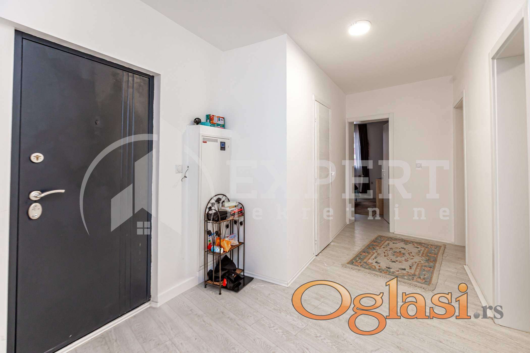 Stan se nalazi u novoj zgradi na drugom je spratu u zgradi bez lifta. Pvc stolarija, laminat, keramičke pločice.